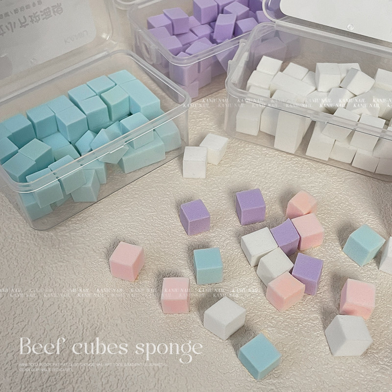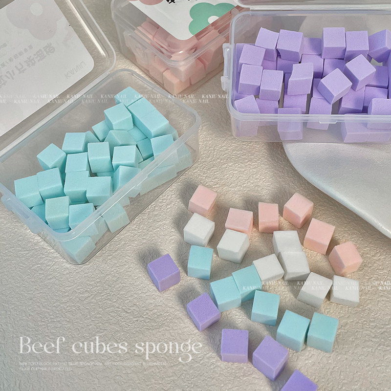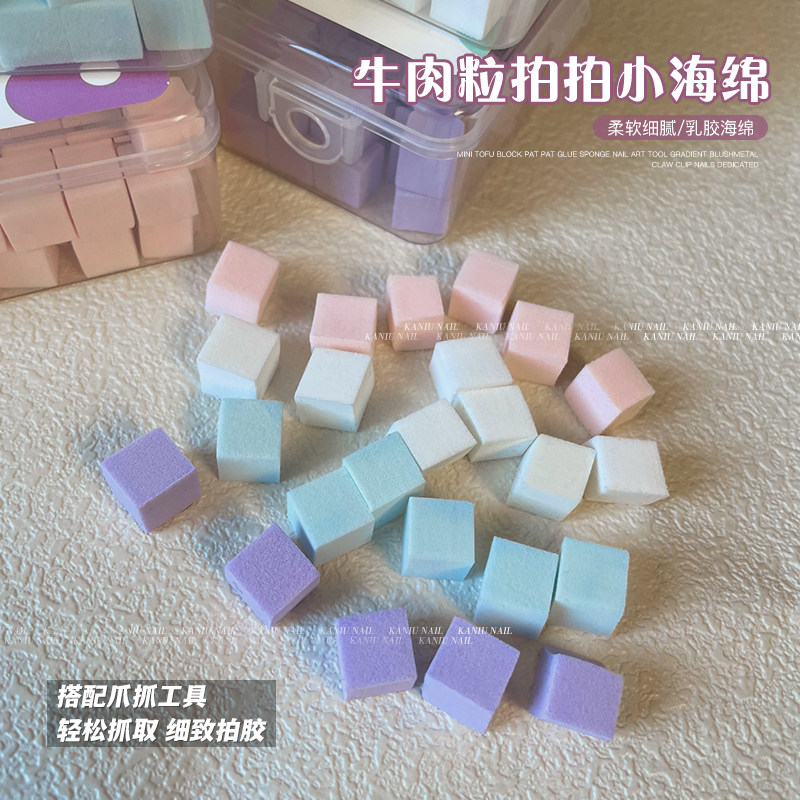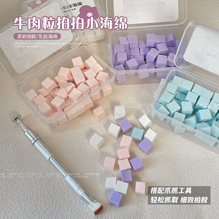 美甲拍拍胶牛肉粒小海绵块迷你渐变腮红不锈钢抓夹小方块指甲工具