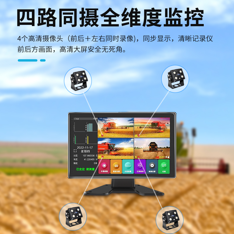 联合收割机拖拉机货车专用测亩仪两路高清倒车影像摄像头四路监控