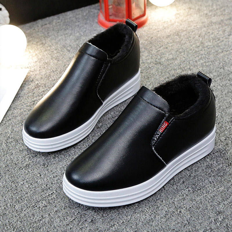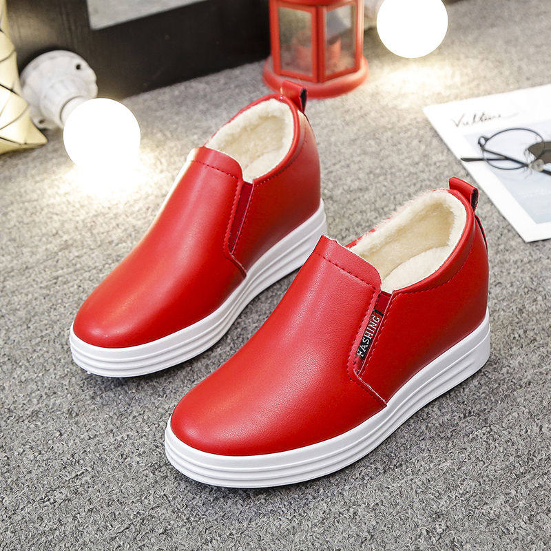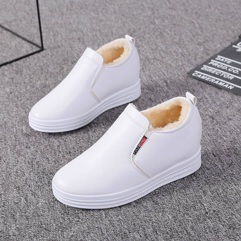 秋冬加棉加厚内增高小白鞋懒人鞋一脚蹬套脚韩版加绒运动休闲女鞋