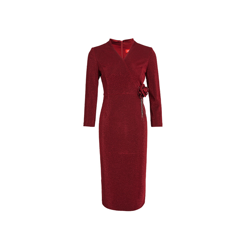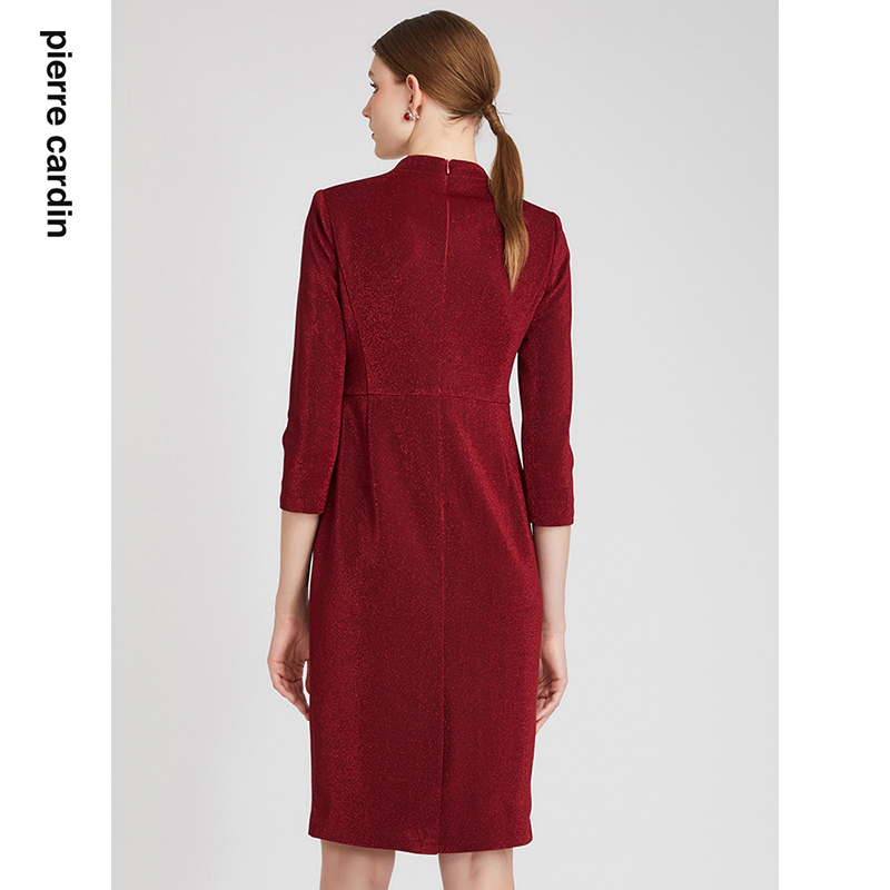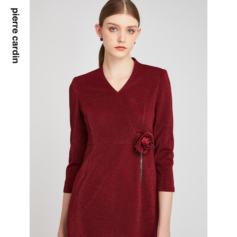 商场同款皮尔卡丹女装春秋新款端庄优雅时尚长袖连衣裙
