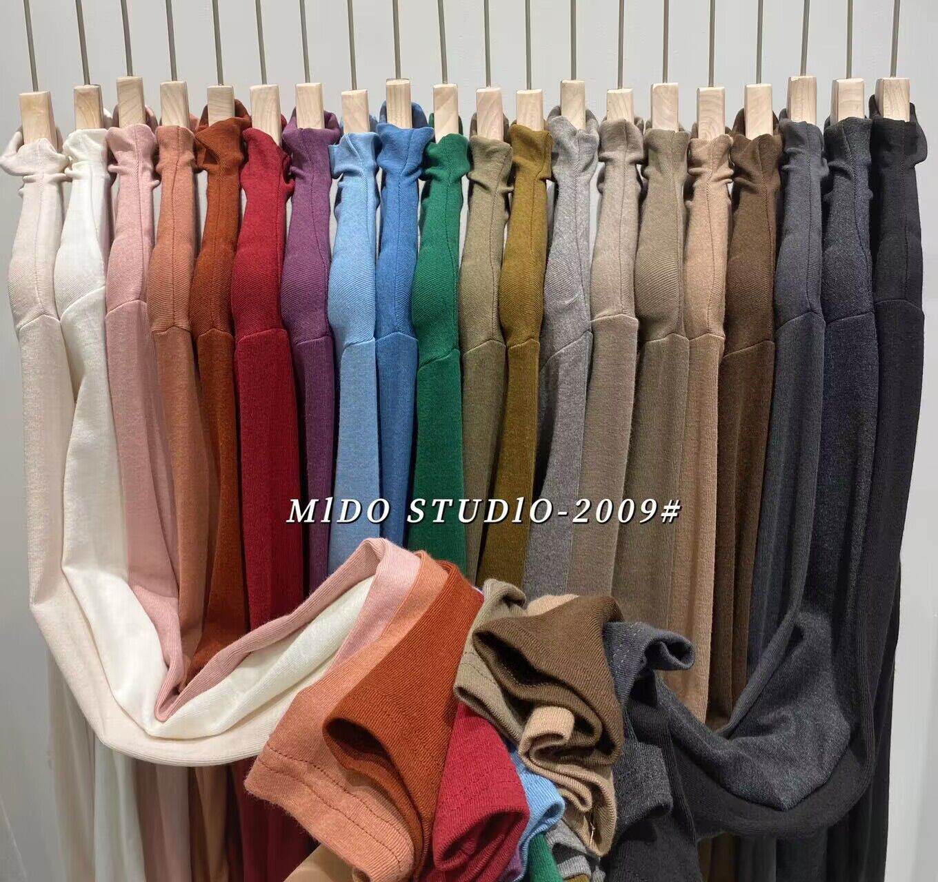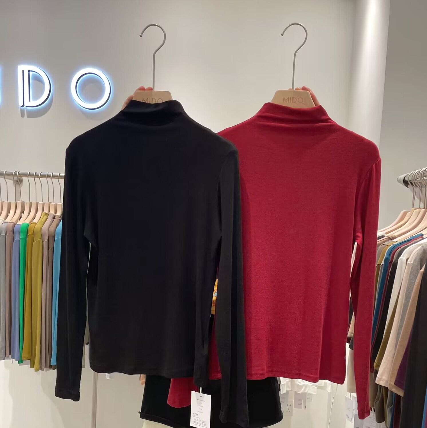 MIDO秋冬韩版简约百搭修身弹力修身半高领羊绒棉长袖T恤打底衫女