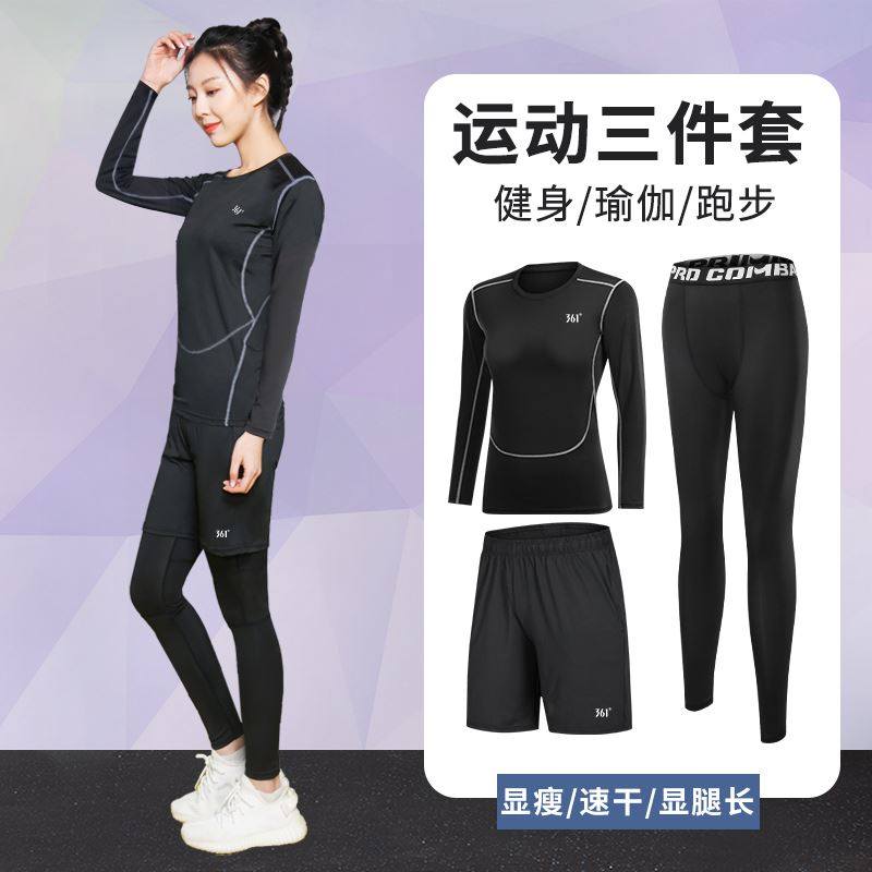 361度运动套装晨跑健身服速干长袖T恤健身房瑜伽服上衣休闲女春季