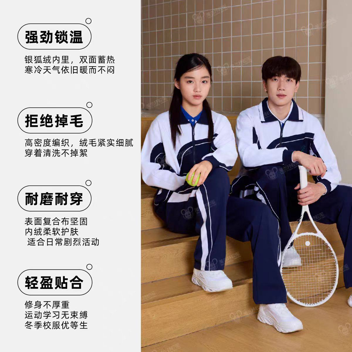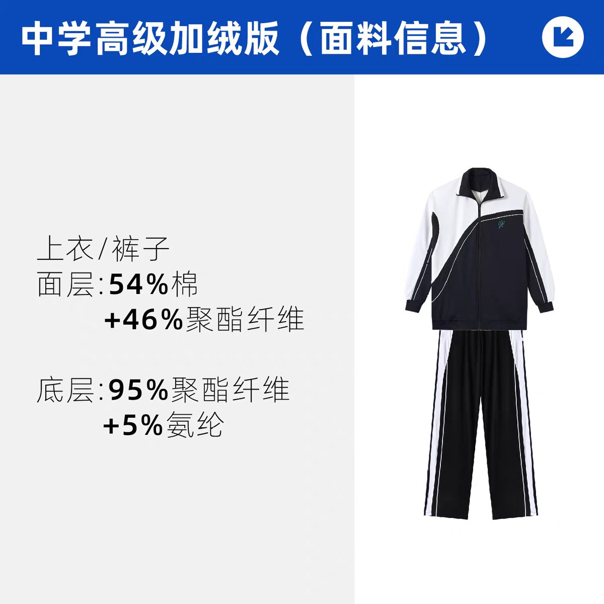 雅兰特高级版中学男女生秋冬抗菌外套拉链长裤超柔加绒外套加绒裤