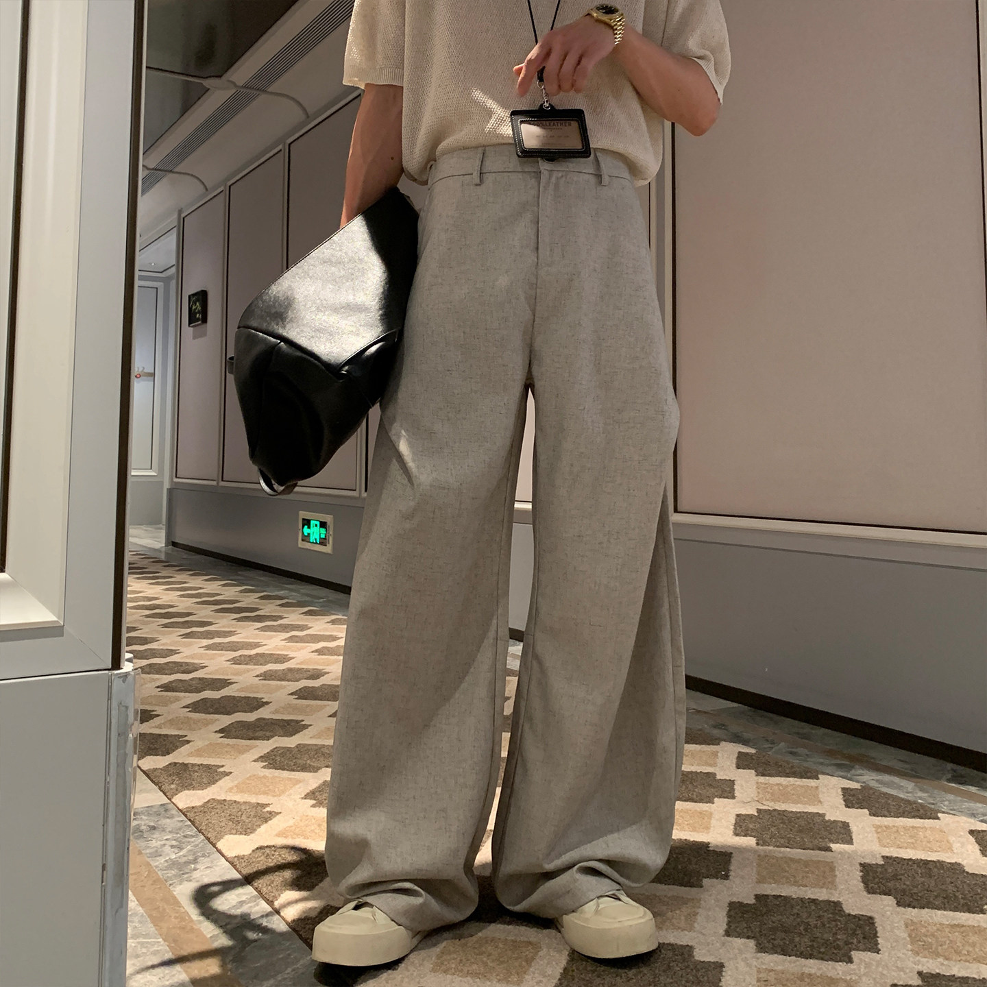 Hualun夏季薄款亚麻休闲裤男款直筒裤男士夏天裤子韩版百搭阔腿裤