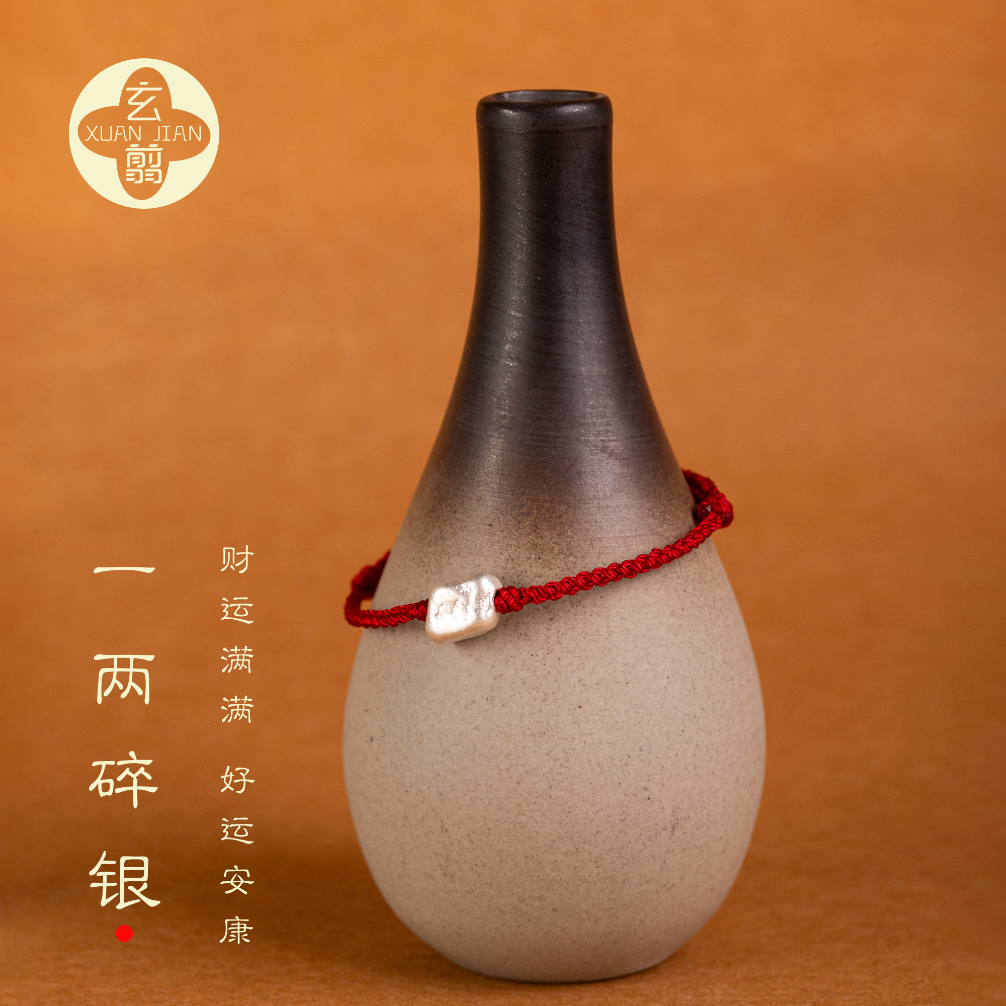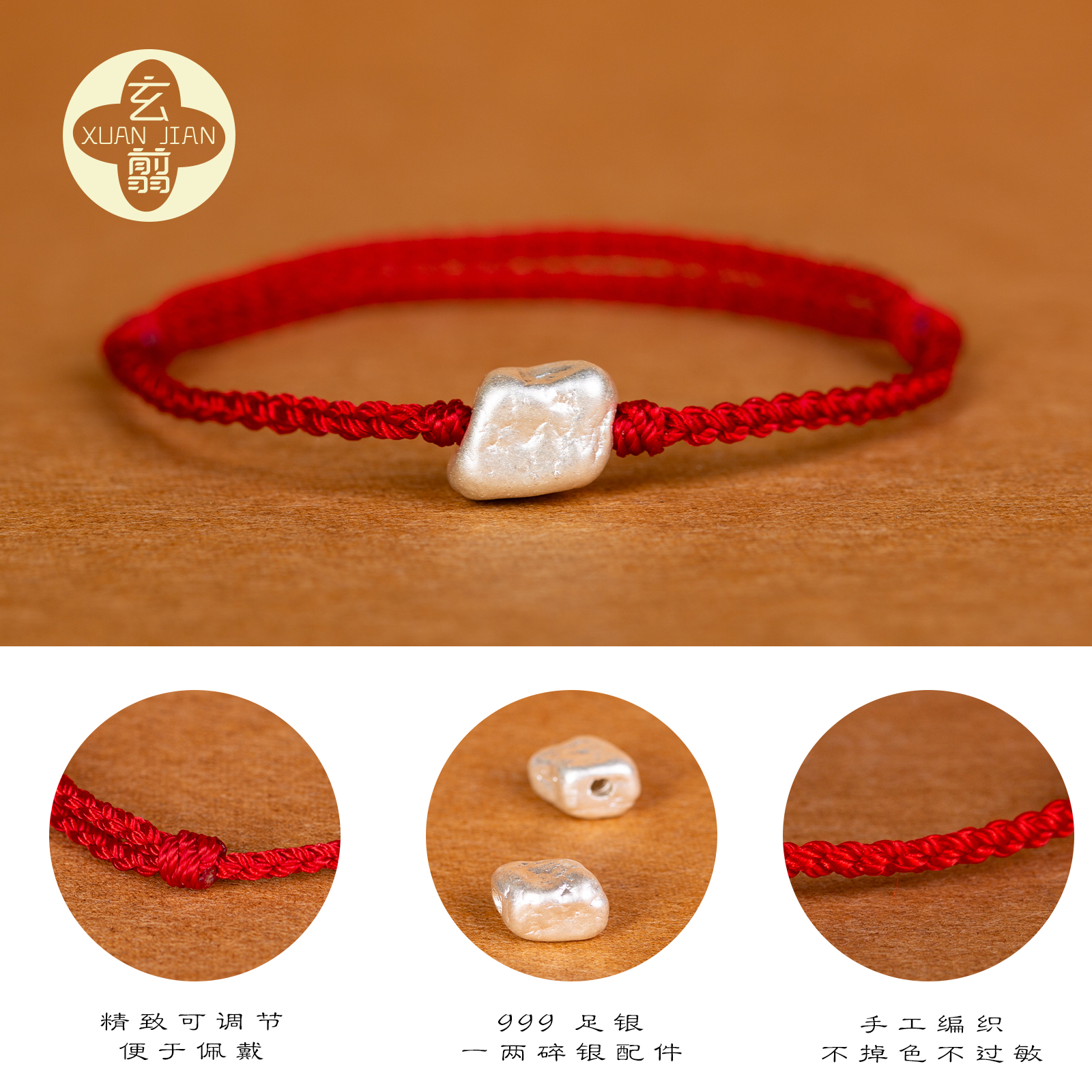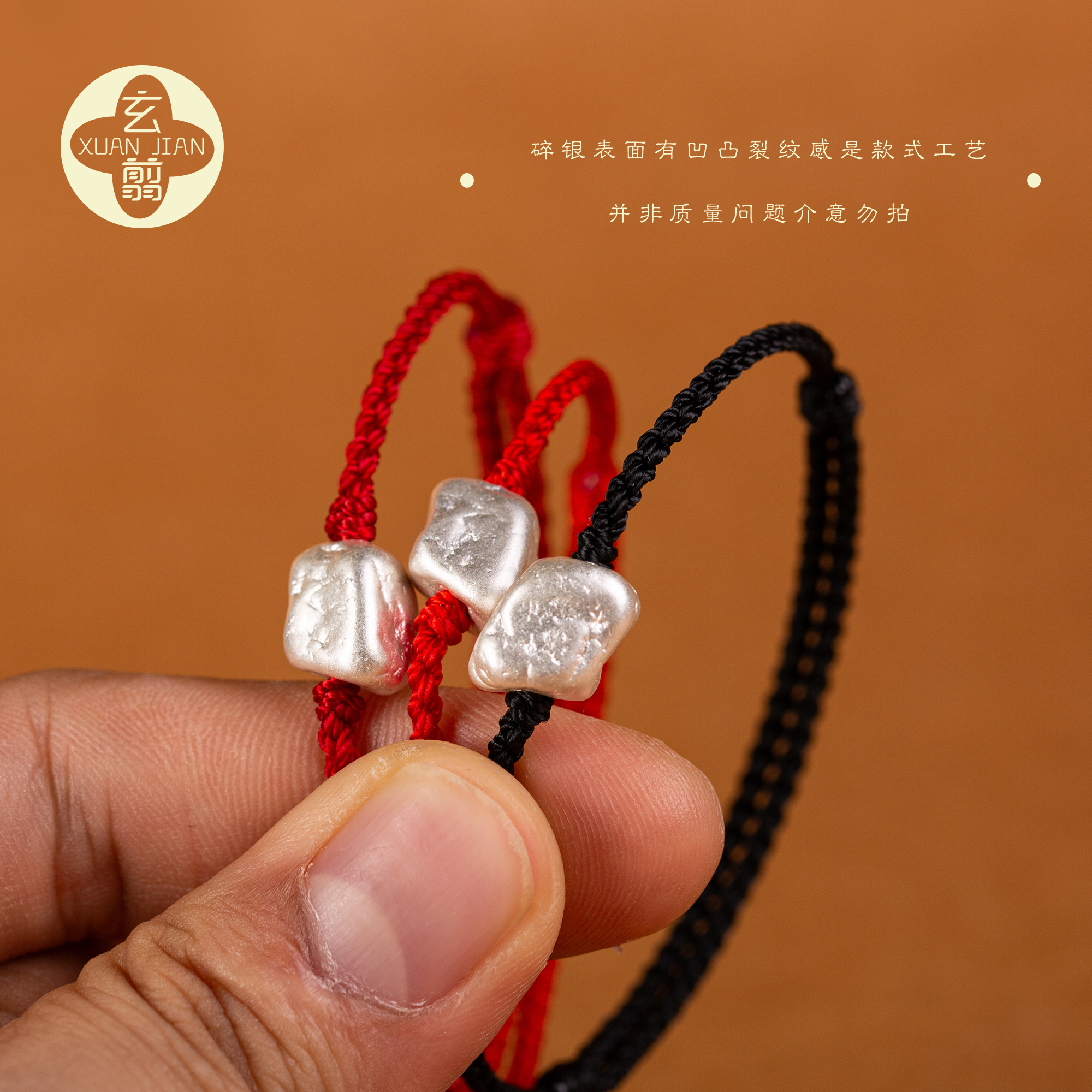 999足银碎银块手链女男红绳本命年转运珠脚链手绳简约复古中国风