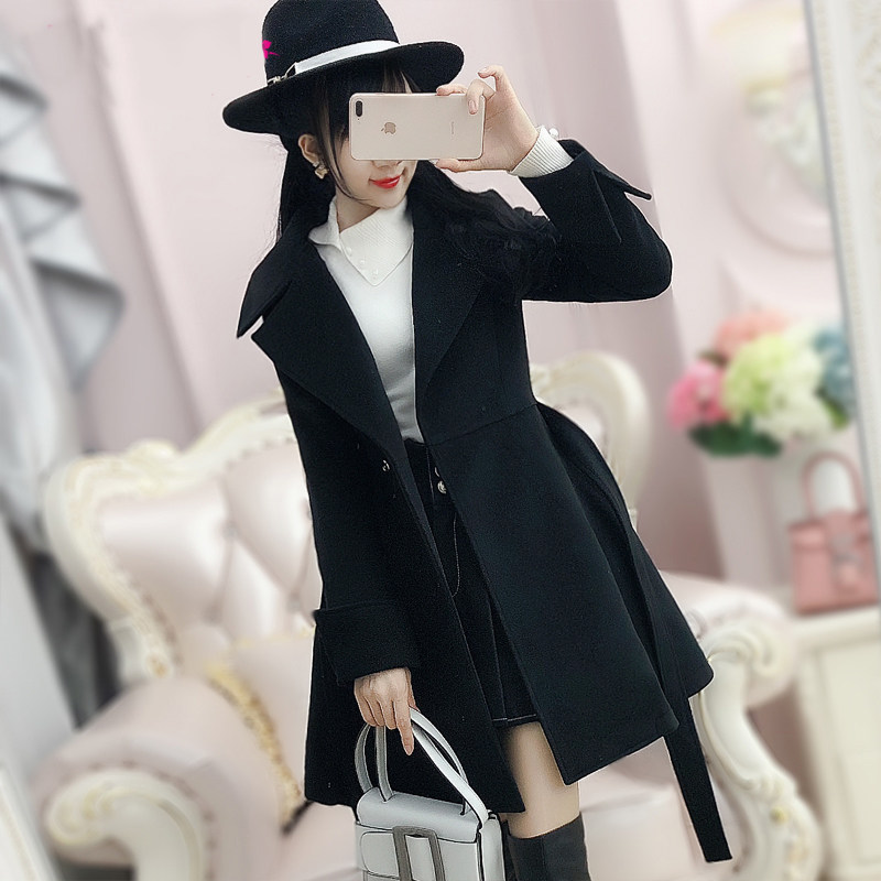 新年战袍冬装呢子大衣韩版中长款修身显瘦加厚西装领毛呢外套女