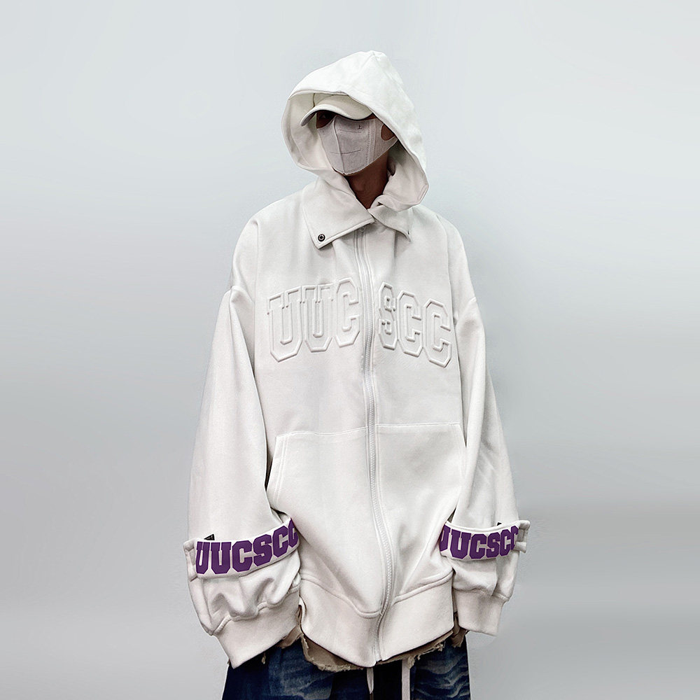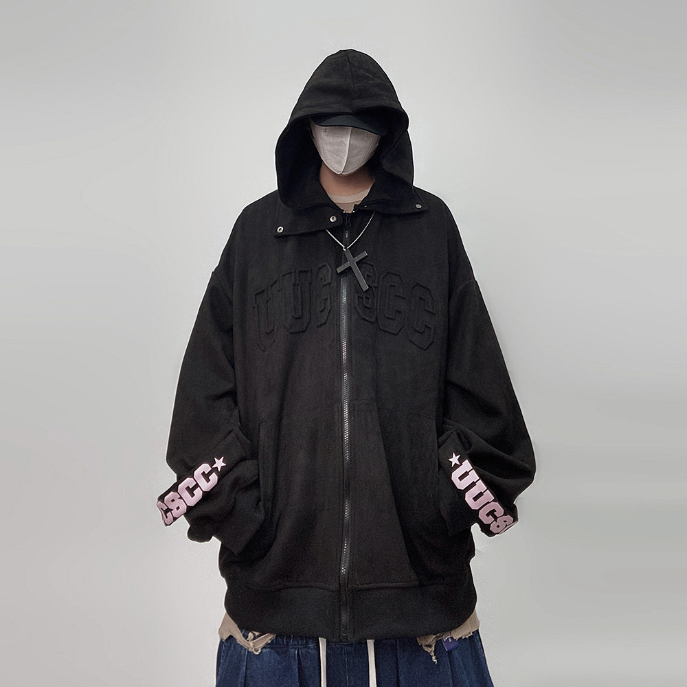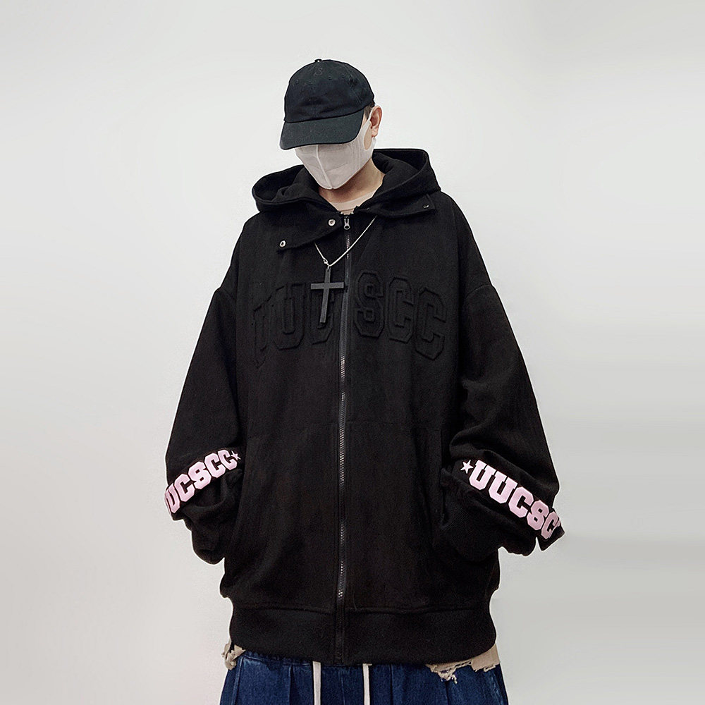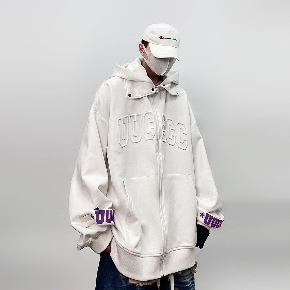 UUCSCC美式高街oversize宽松连帽卫衣嘻哈重磅休闲开衫外套上衣男