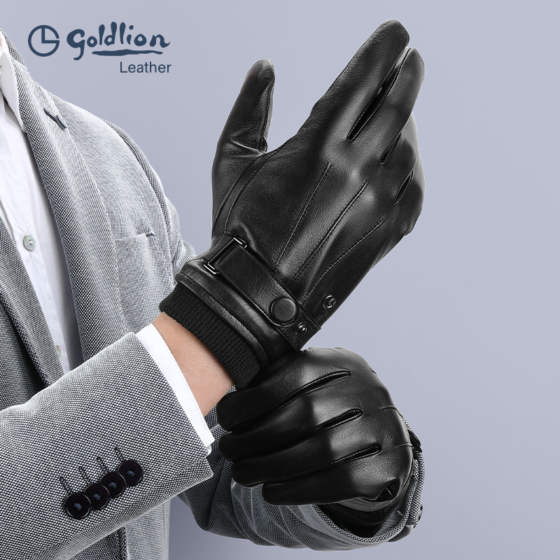 金利来羊皮手套男士冬季加绒保暖骑行防风防水户外全指手套可触屏