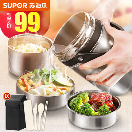 苏泊尔保温饭盒桶上班族女便携学生大容量不锈钢便当盒多层冬季天