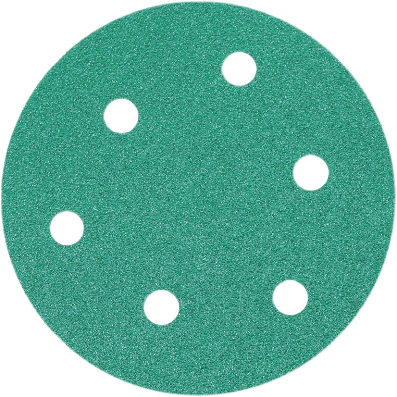 汽车干磨砂纸5寸6孔绿砂纸金属漆面抛光打磨125mm圆盘背绒自粘式