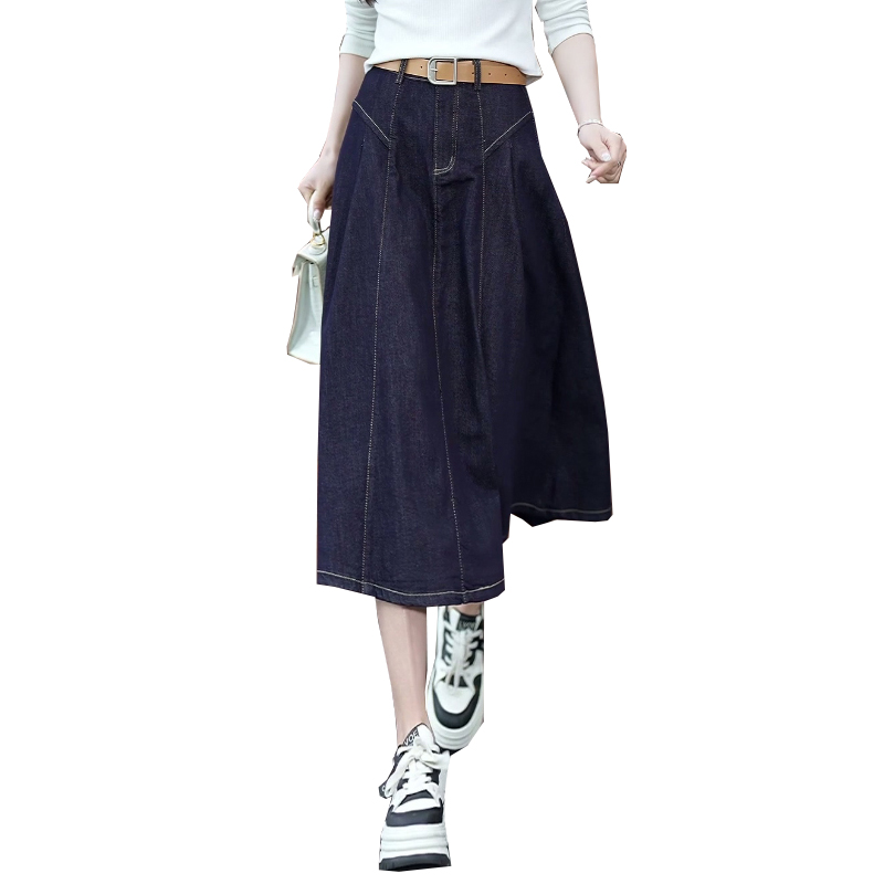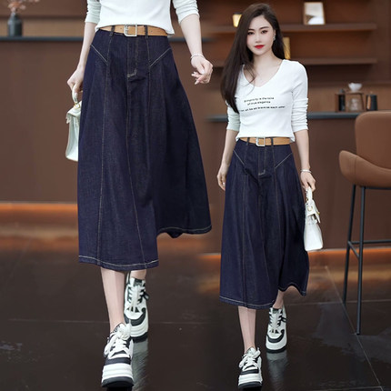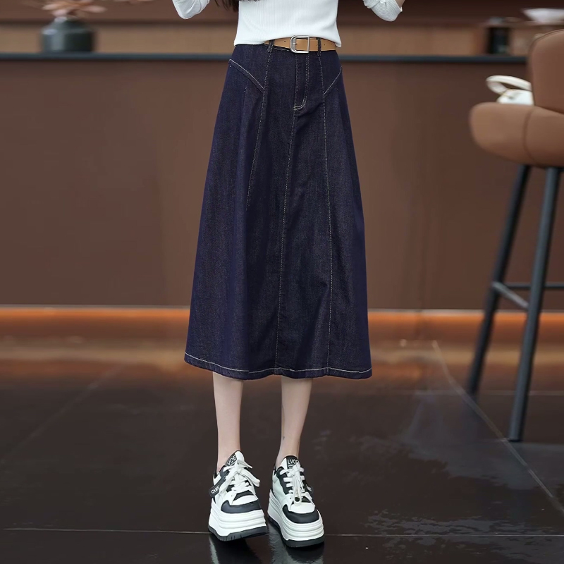 丹宁蓝半身牛仔裙女秋季2025新款高腰显瘦中长款小个子A字裙子秋