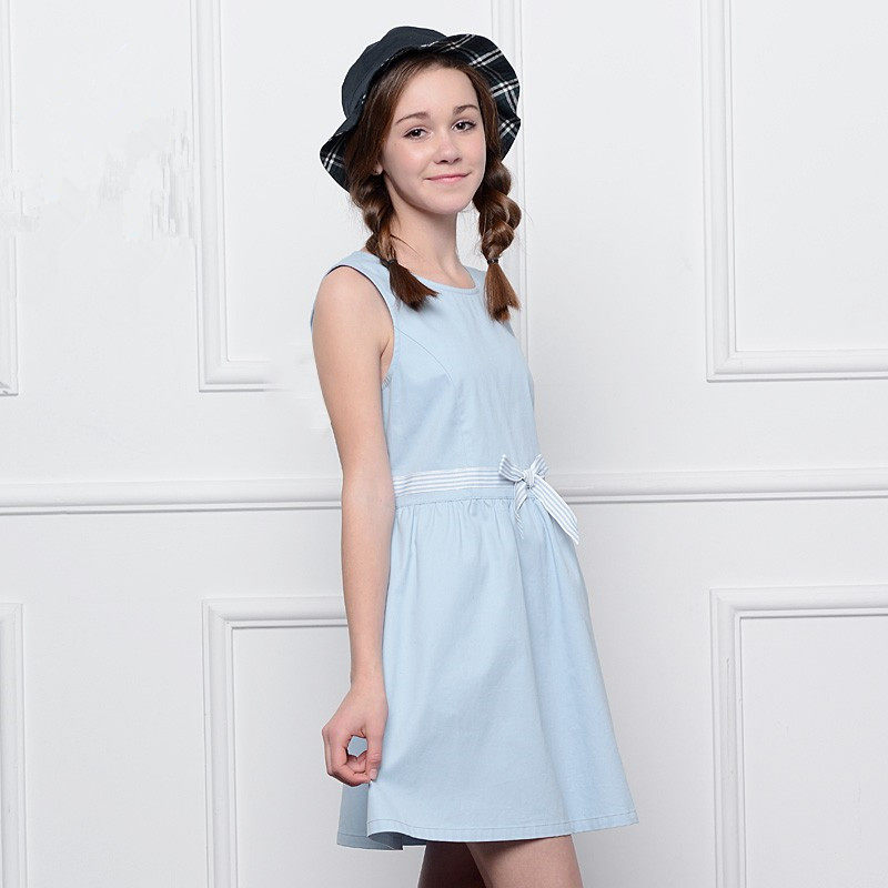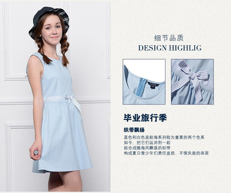 伊顿纪德裙子学生少女大童学院风浅蓝色薄型纱卡背心连衣裙15L258