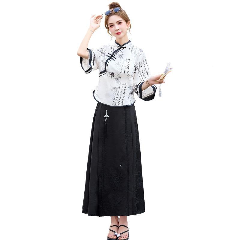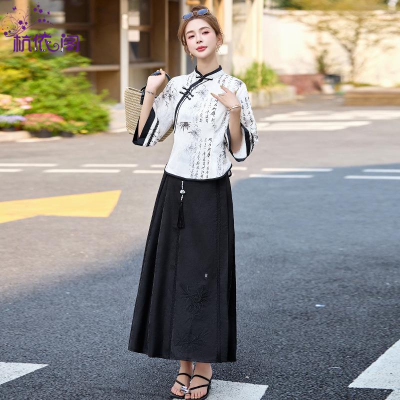 国新中改式风套装连衣裙服女装夏新款复古ZMENG11良旗袍汉两件套