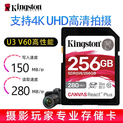 金士顿 V60 极速SD卡 280M/S相机存储卡256G 内存卡128G
