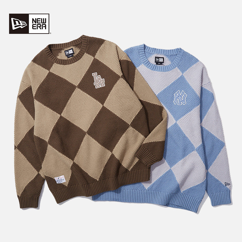 New Era纽亦华2025秋冬新款MLB毛衣菱格拼接针织衫NY宽松复古上衣