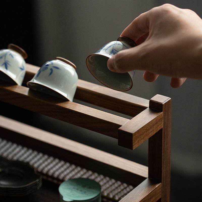 茶杯配件晾包架功夫架杯茶具收纳批发茶道茶具邮黑胡桃复古中式架