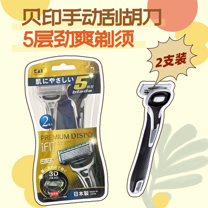 日本进口KAI贝印成年男性用刮面不锈钢刀片5层刃刮胡剃须刀2支装