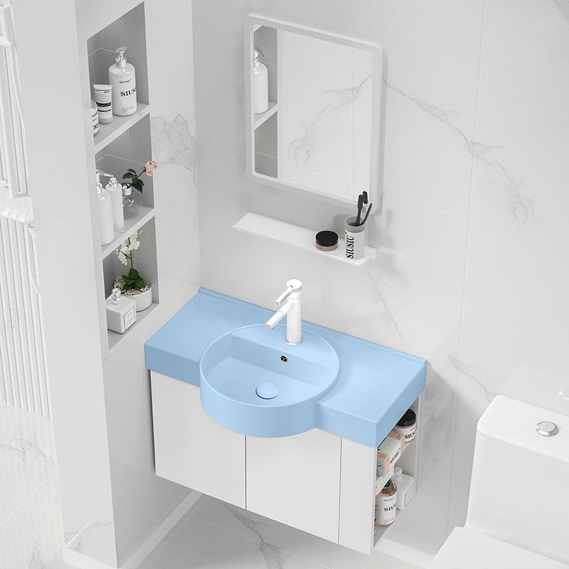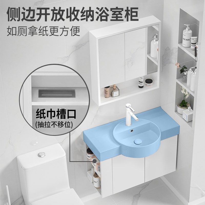 小户型壁挂墙式实木浴室柜洗漱盆挂盆洗面盆迷你洗手池蓝色洗脸盆