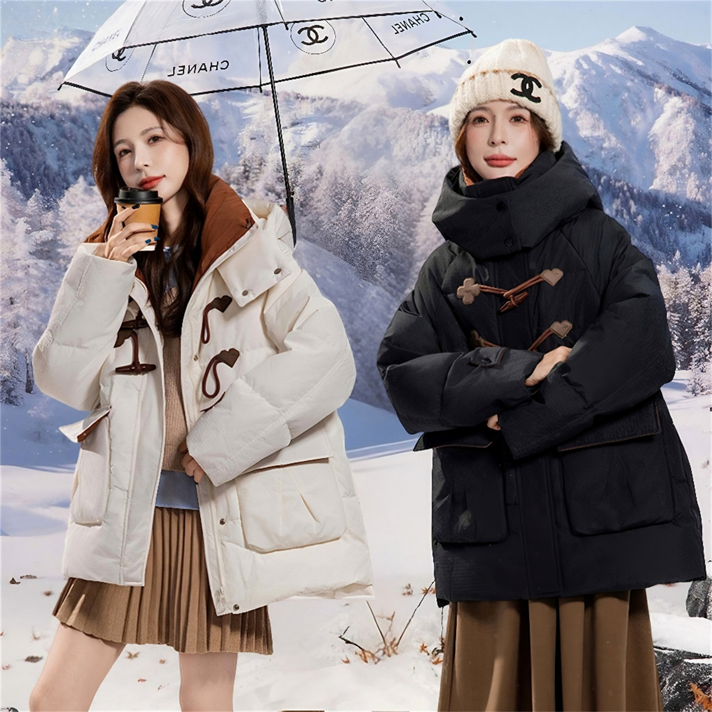 大码羽绒服女复古牛角扣外套冬