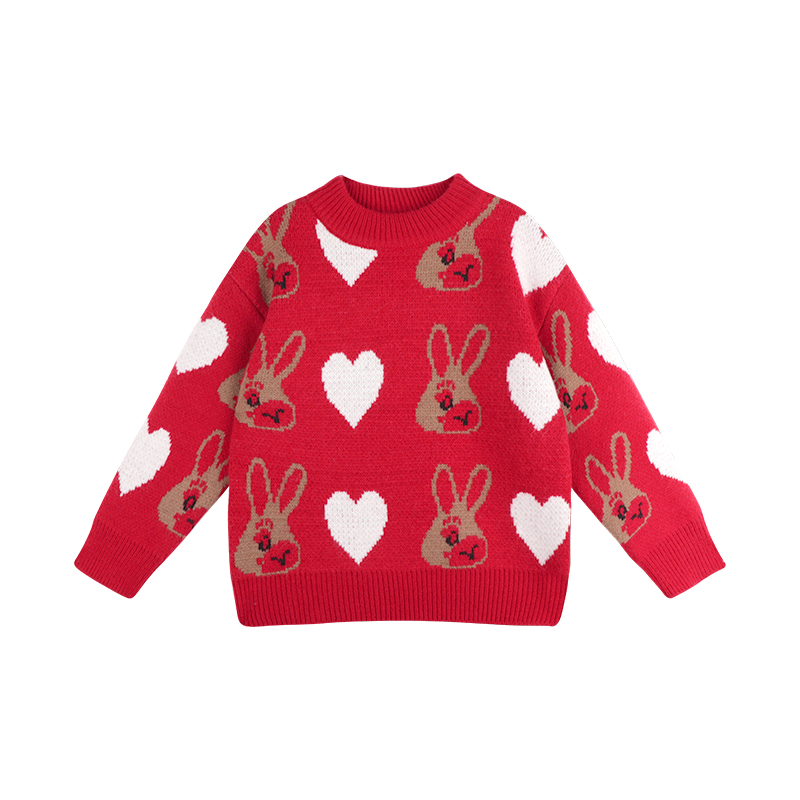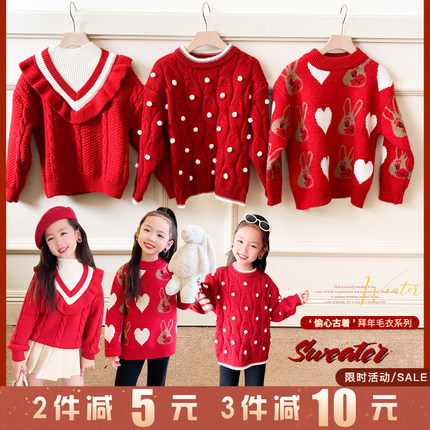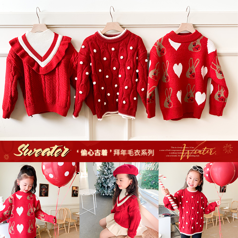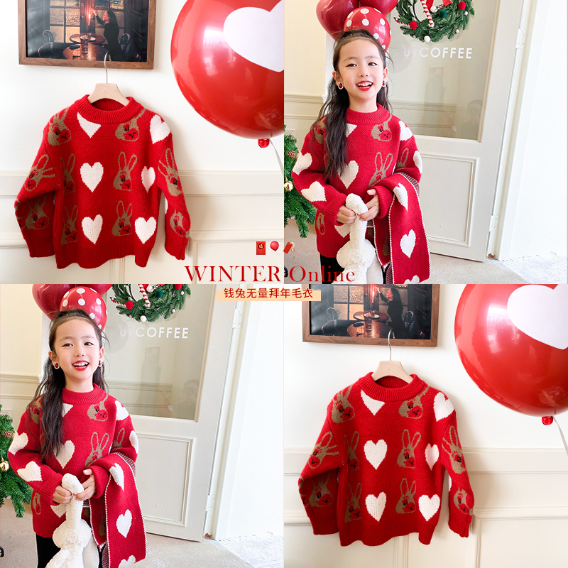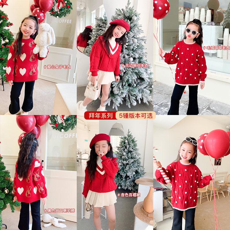 Amybaby女童红色毛衣2025新款儿童圣诞加厚保暖套头打底针织衫