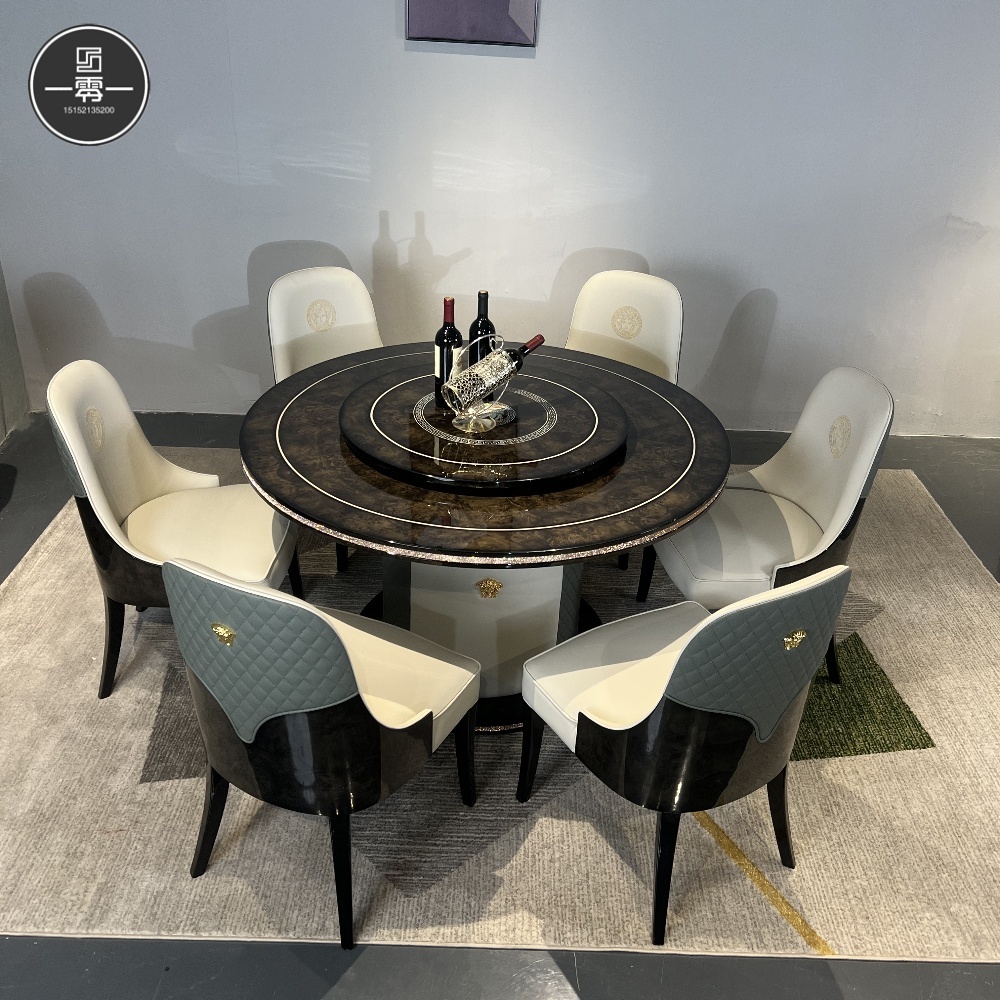 意式轻奢联名范思哲圆形实木餐桌椅组合美杜莎高端别墅大户型家具