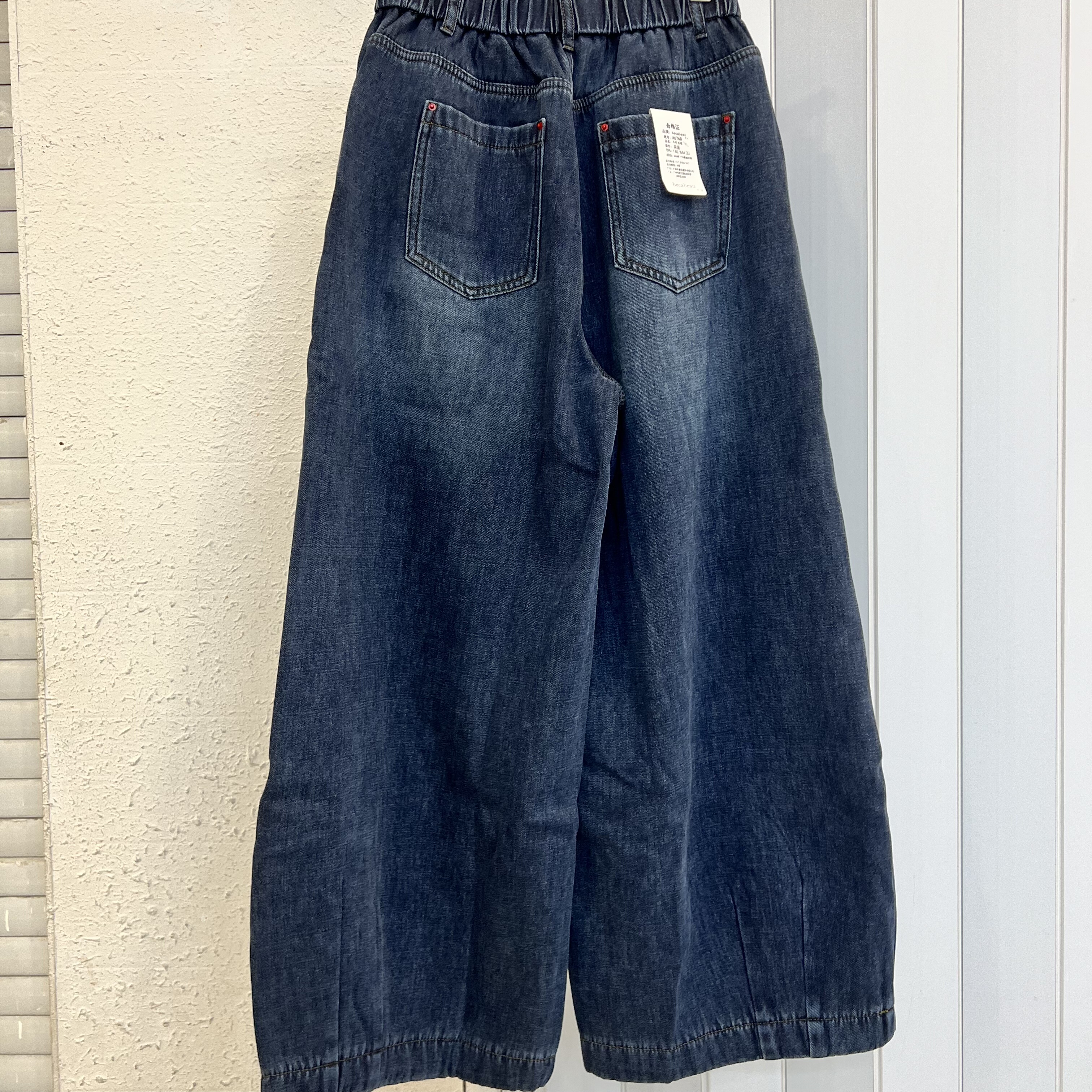 becabeau6768冬装韩版宽松大码胖mm慵懒加绒阔腿弯刀牛仔裤长裤女