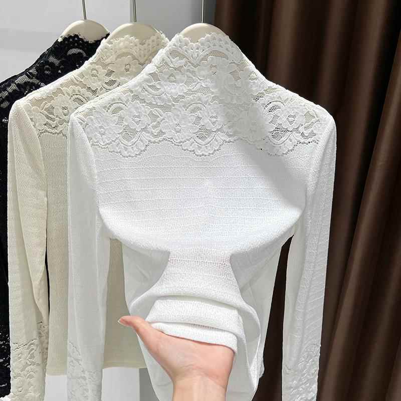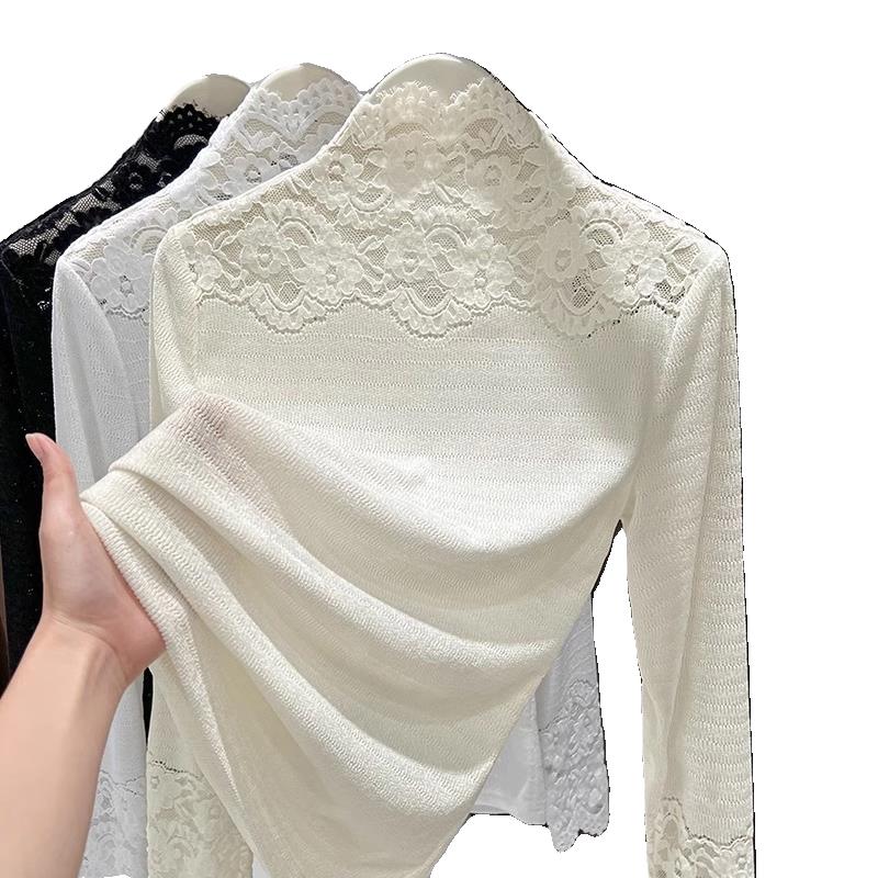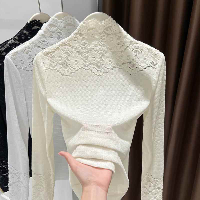秋冬高端精致蕾丝打底衫女半高领内搭可外穿感白色衣上衣1007r