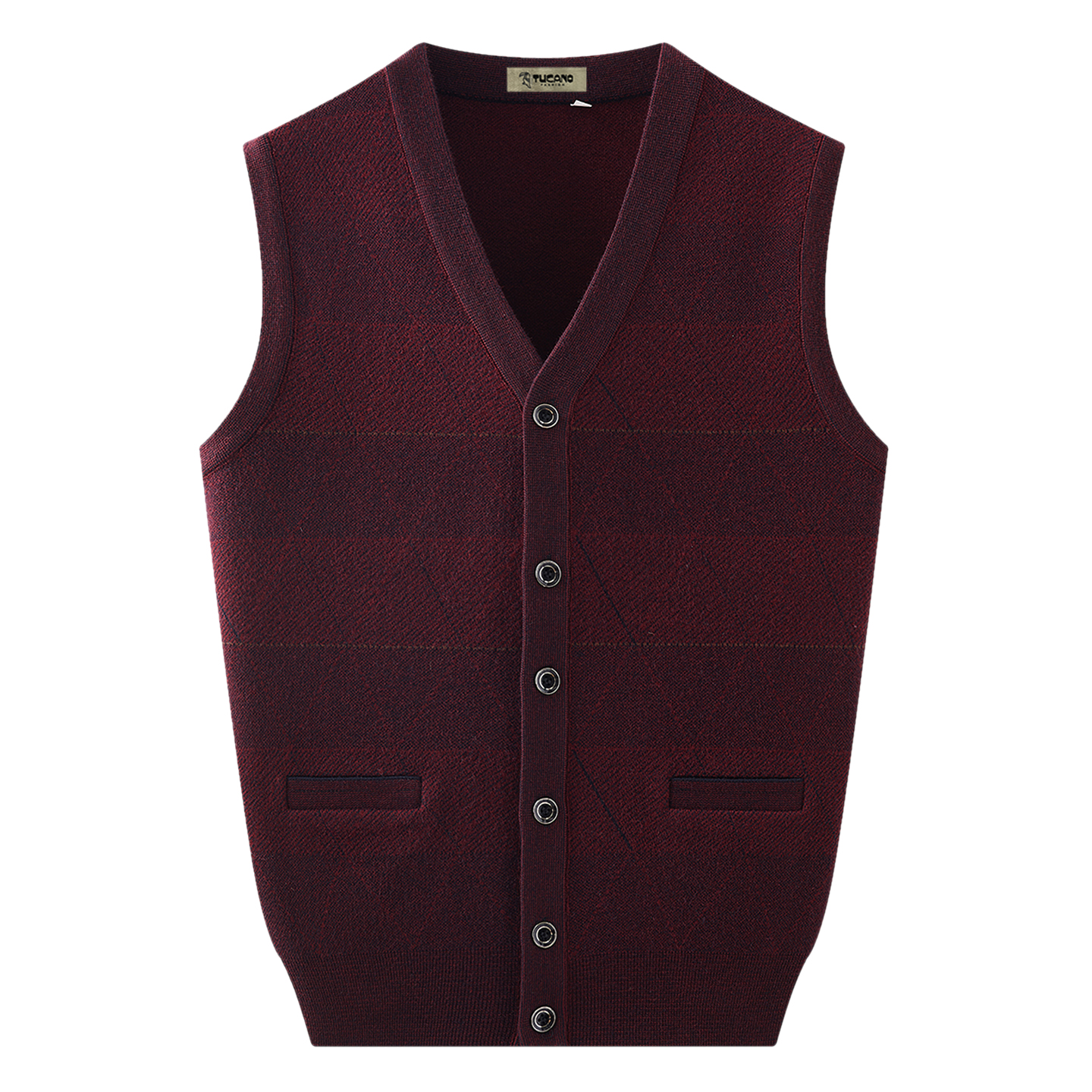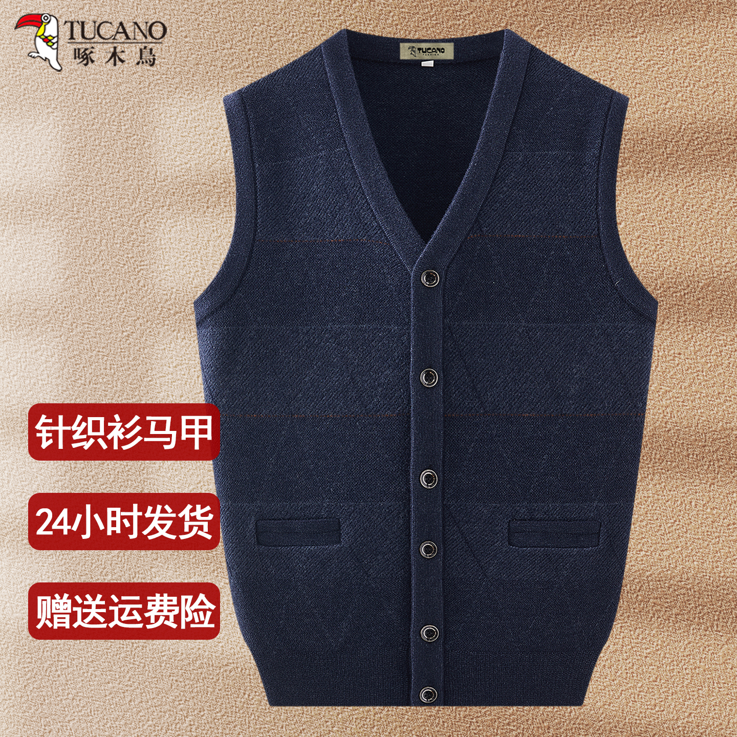 啄木鸟男士V领针织马甲菱形格开衫背心老年休闲加厚保暖无袖毛衣