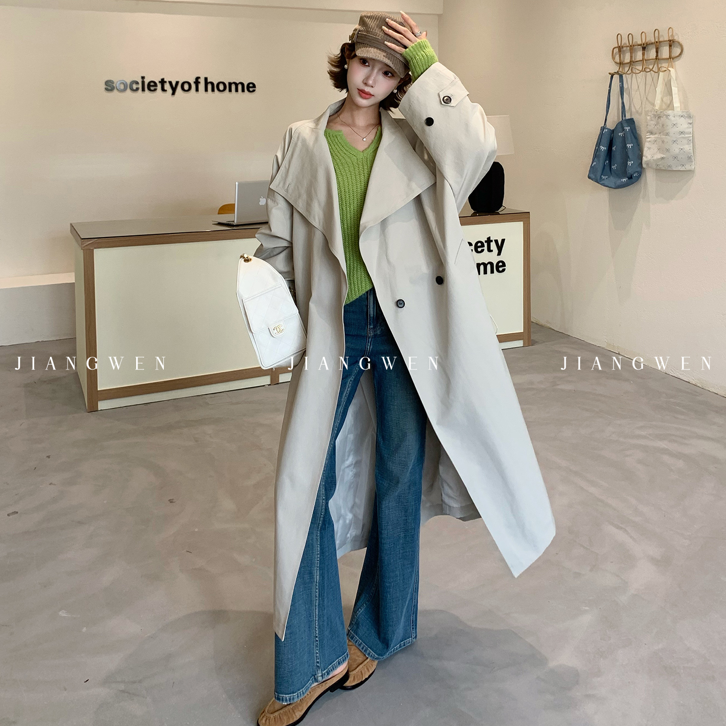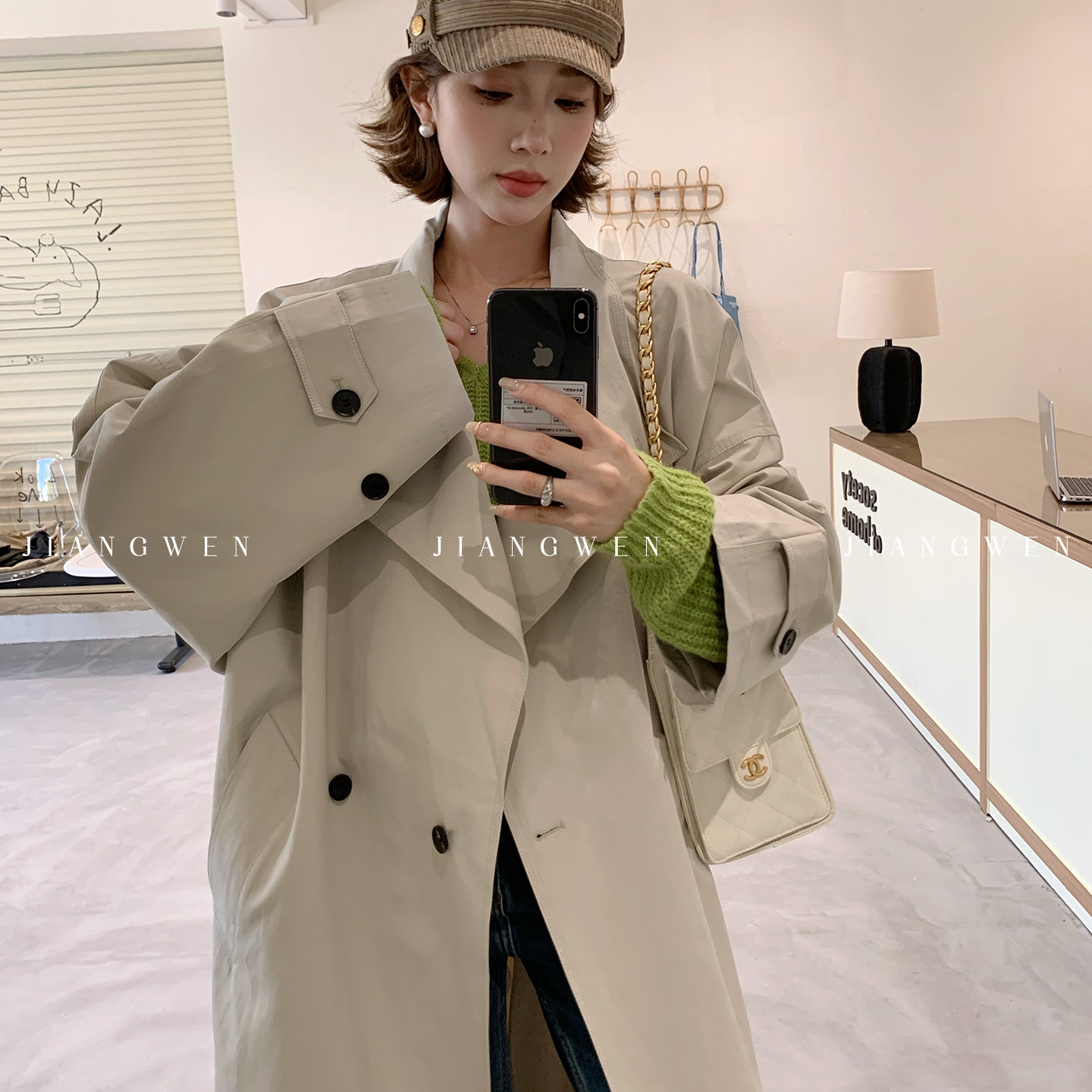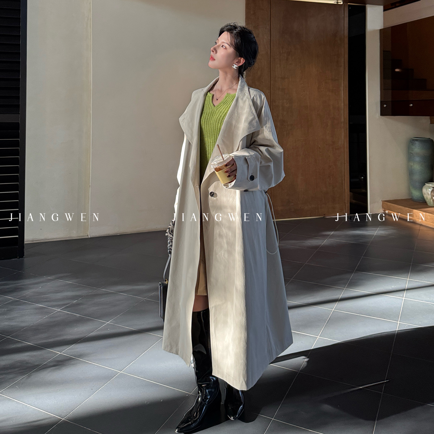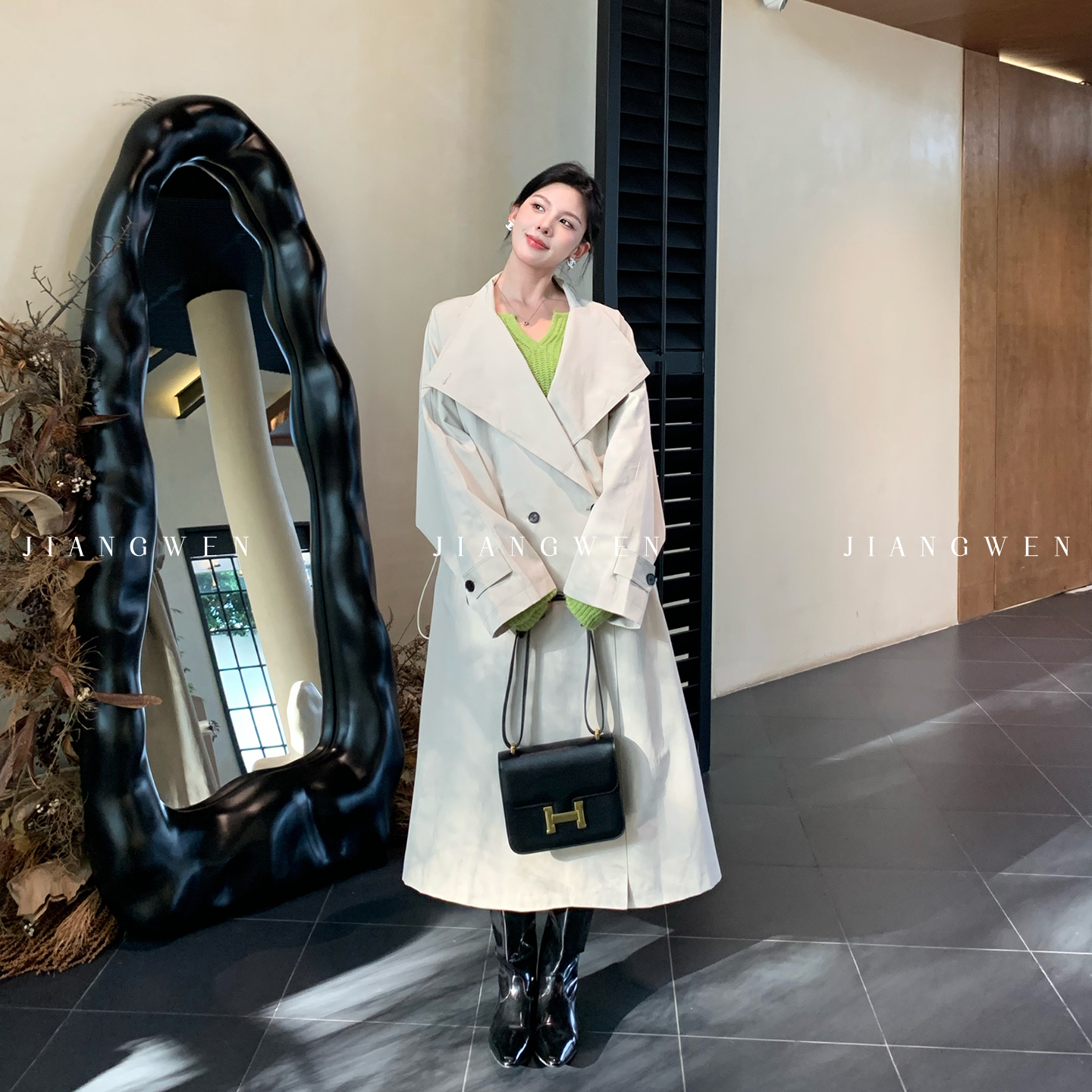 姜雯 卡其色大翻领中长款风衣外套女秋季高级感廓形气质外搭大衣