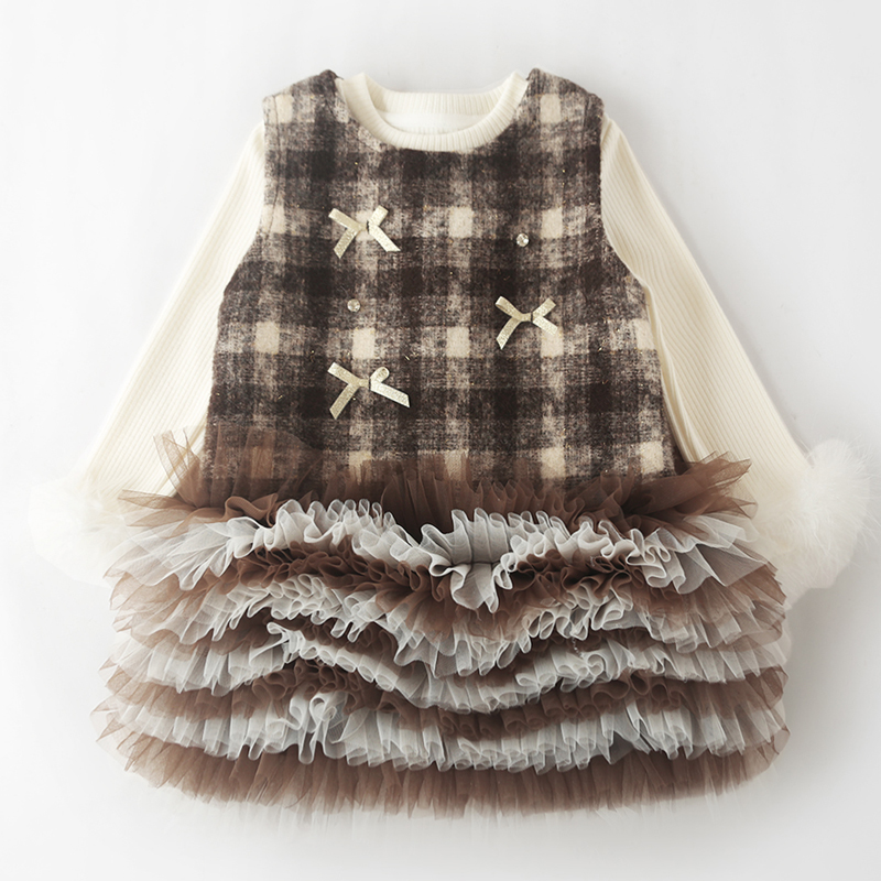 女童毛呢背心裙蛋糕裙儿童装蓬蓬纱裙连衣裙秋冬裙子小女孩公主裙