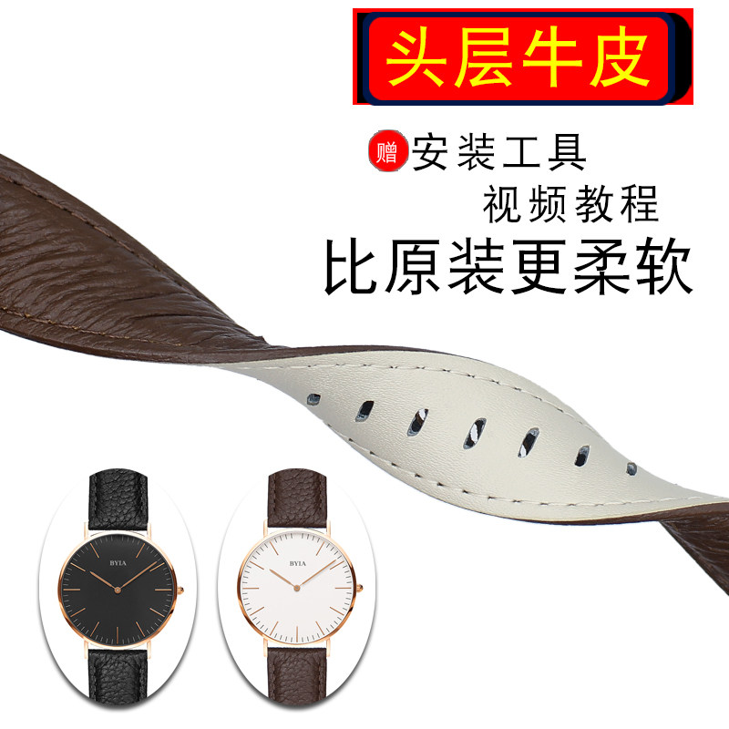 加长黑色男款表带真皮手表带超长牛皮表链防水代用天梭DW棕色20mm