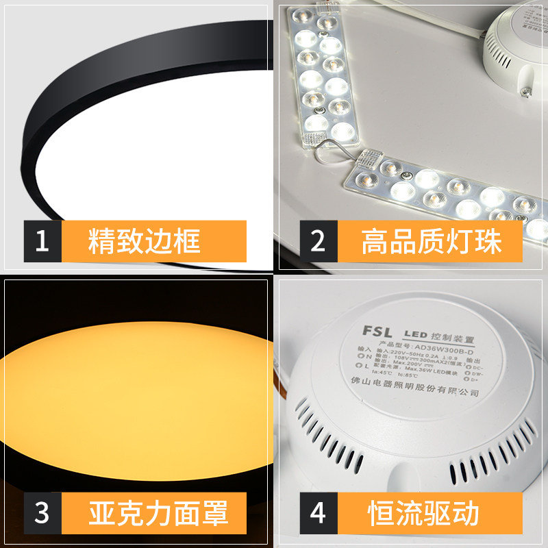 FSL 佛山照明 薄吸顶灯圆形LED客厅灯简约现代卧室灯餐厅书房灯