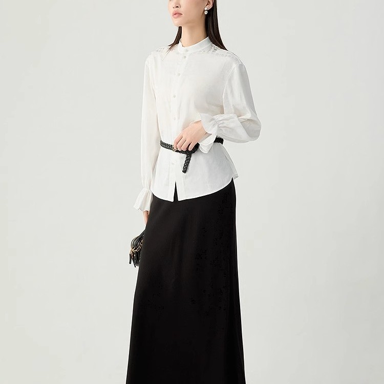 阿玛施专柜同款春秋新款气质优雅新中式立领喇叭长袖衬衫女130009