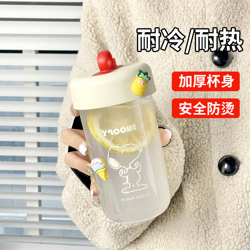 史努比便携水杯新款随手杯食品级塑料夏季男女生随行杯小巧吸管