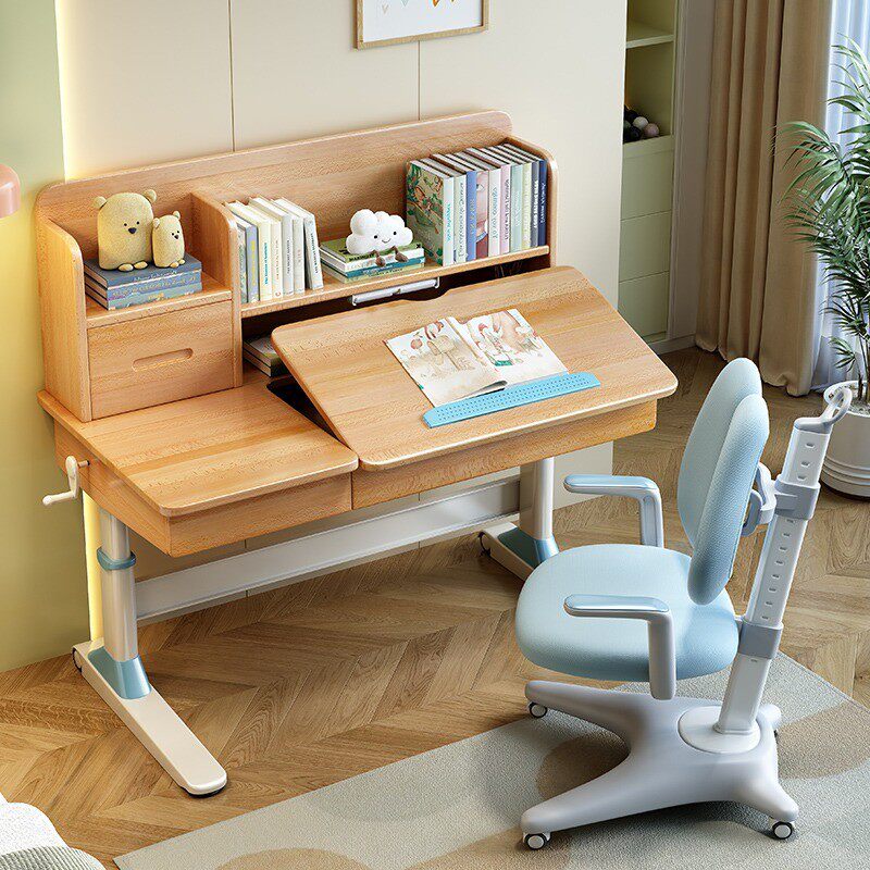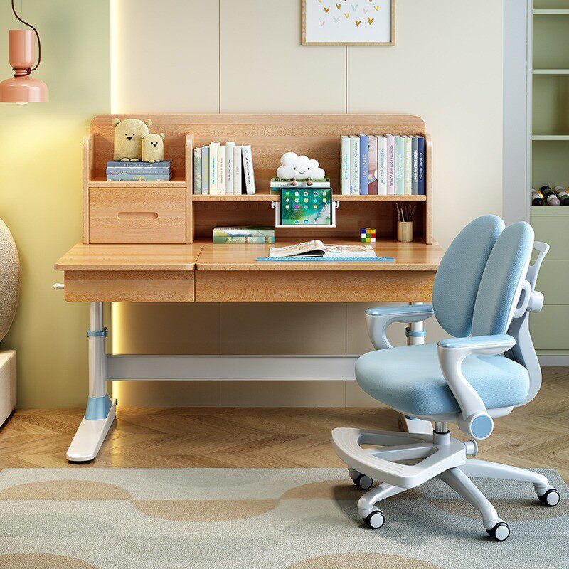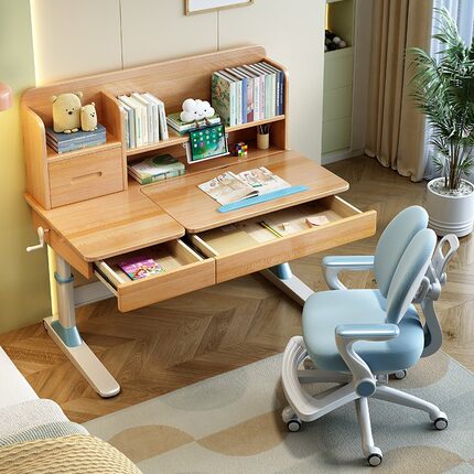榉木儿童书桌实木多功能学习桌家用小学生可调节升降写字套装桌椅