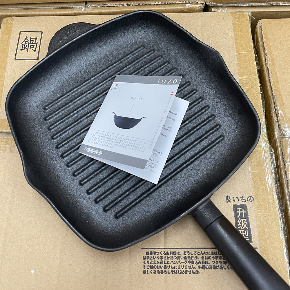 出口日本品质条纹煎牛排锅专用锅铸铁锅平底煎锅家用无涂层不粘锅