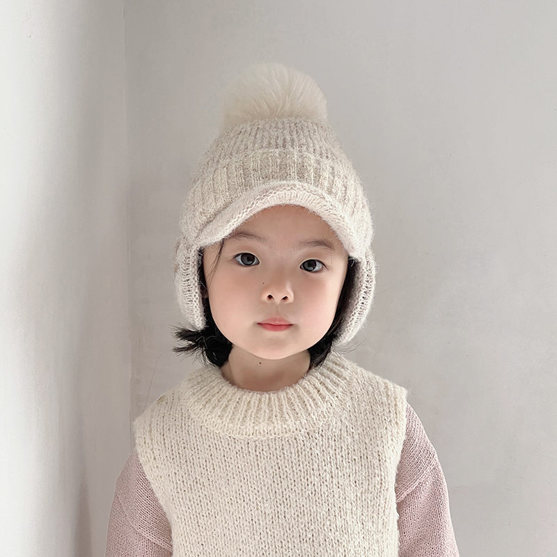 儿童帽子秋冬季韩版蝴蝶结保暖加厚针织毛线帽男女宝宝护耳鸭舌帽