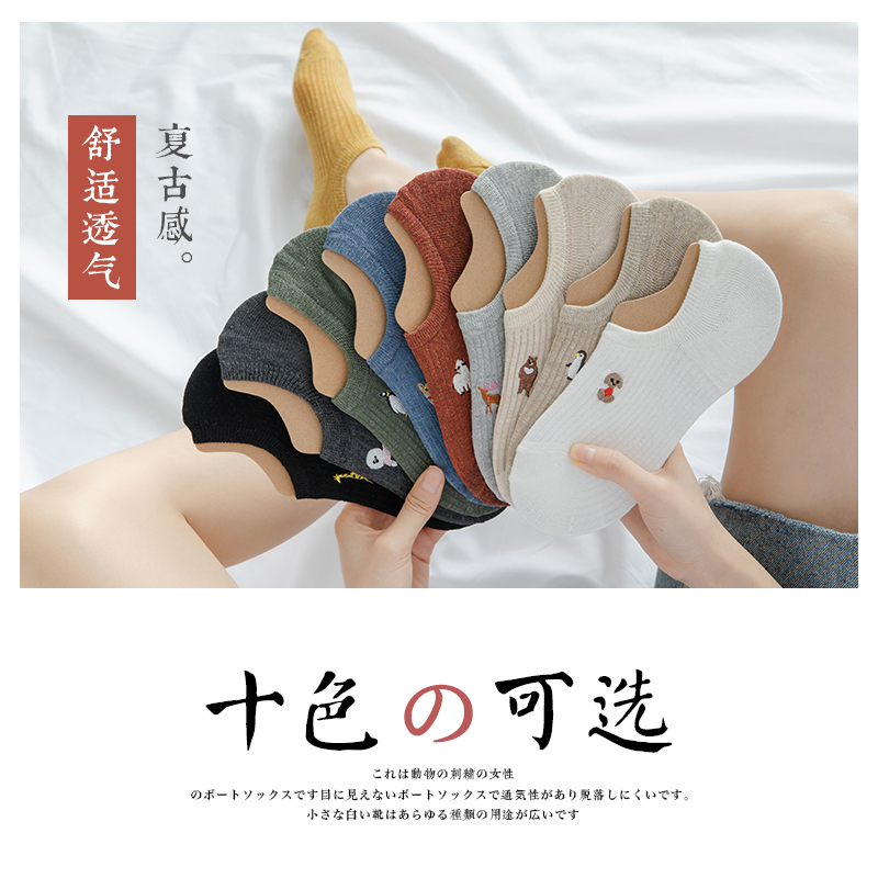 船袜女硅胶防滑不掉跟夏季薄款纯棉女士隐形袜可爱袜子女短袜浅口