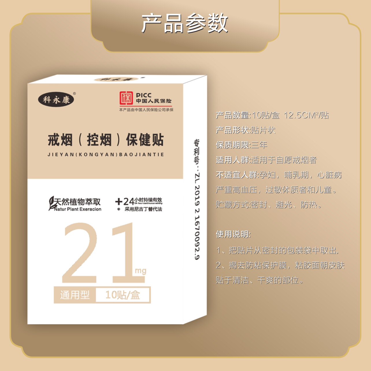 科永康 戒烟贴 控烟贴 保健贴 21mg通用型 强效 加强版 一盒十贴