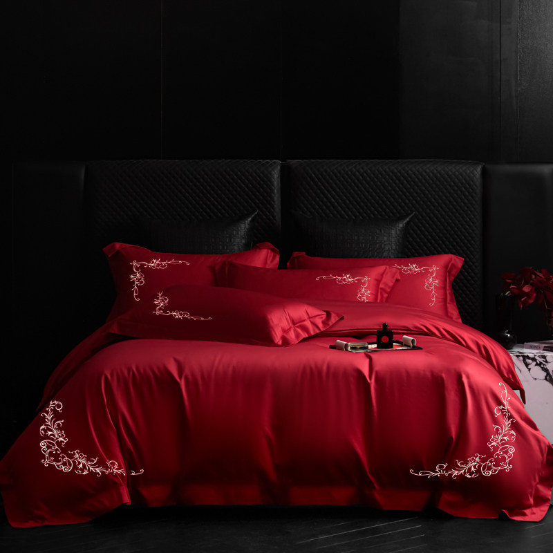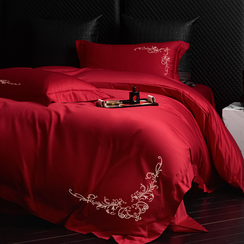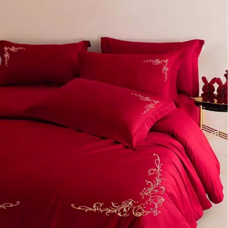 新婚轻磨毛结婚四件套大红色婚庆被套刺绣喜庆婚房床单床上用品