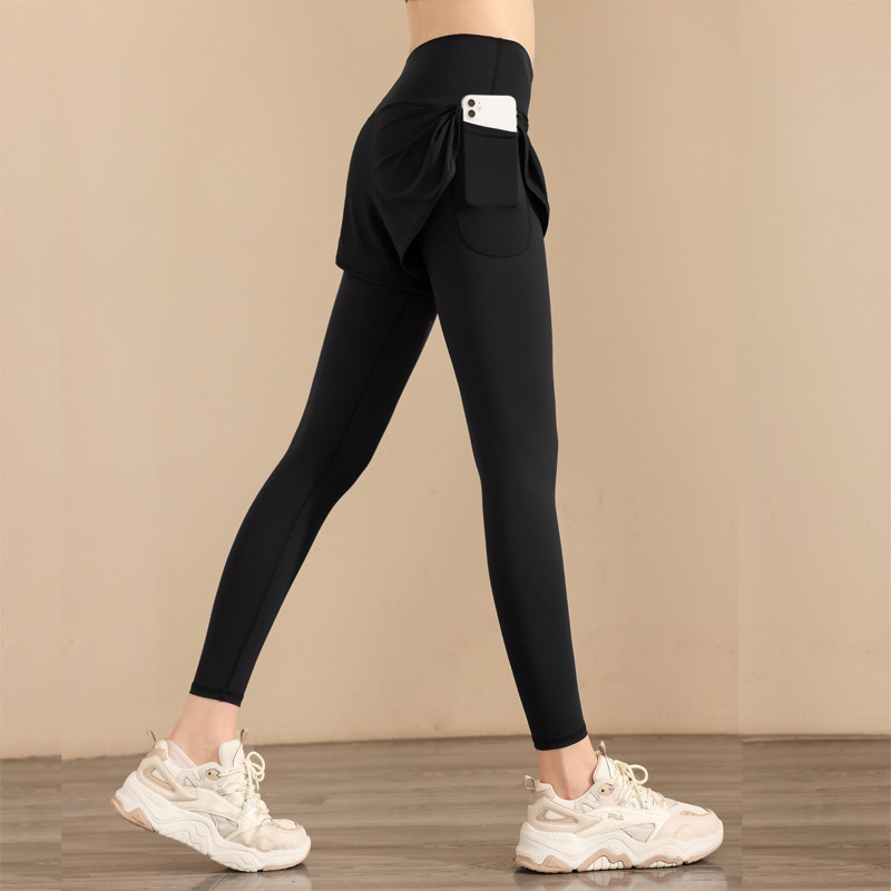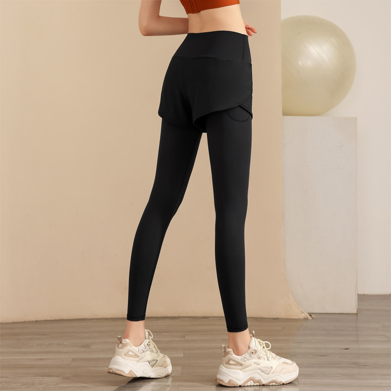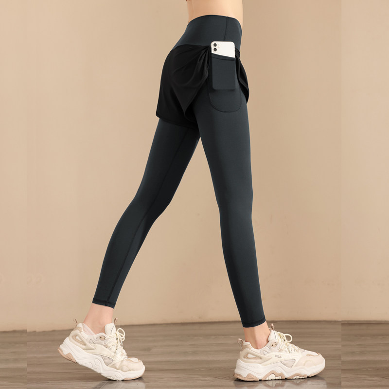健身裤女冬高腰款提臀假两件速干晨跑步训练运动裤专业骑行长裤
