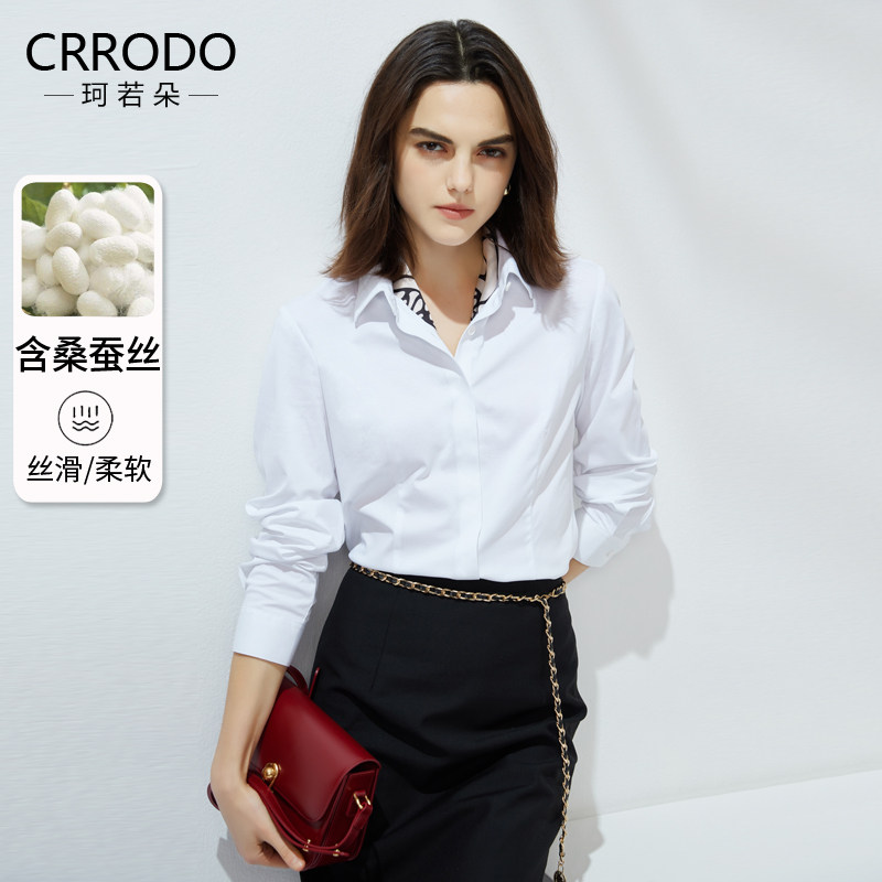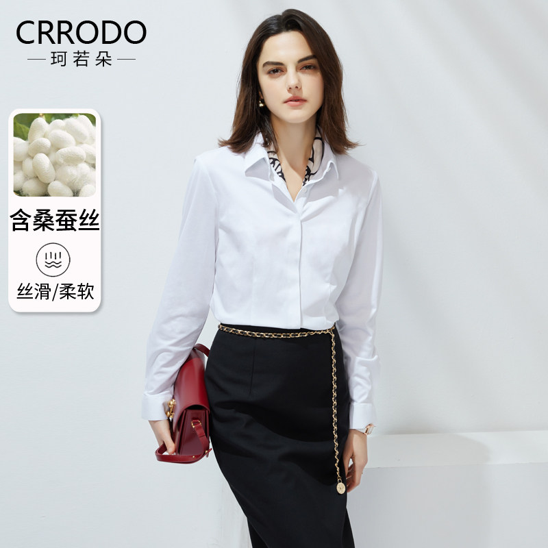 白色衬衫女长袖含桑蚕丝通勤衬衣