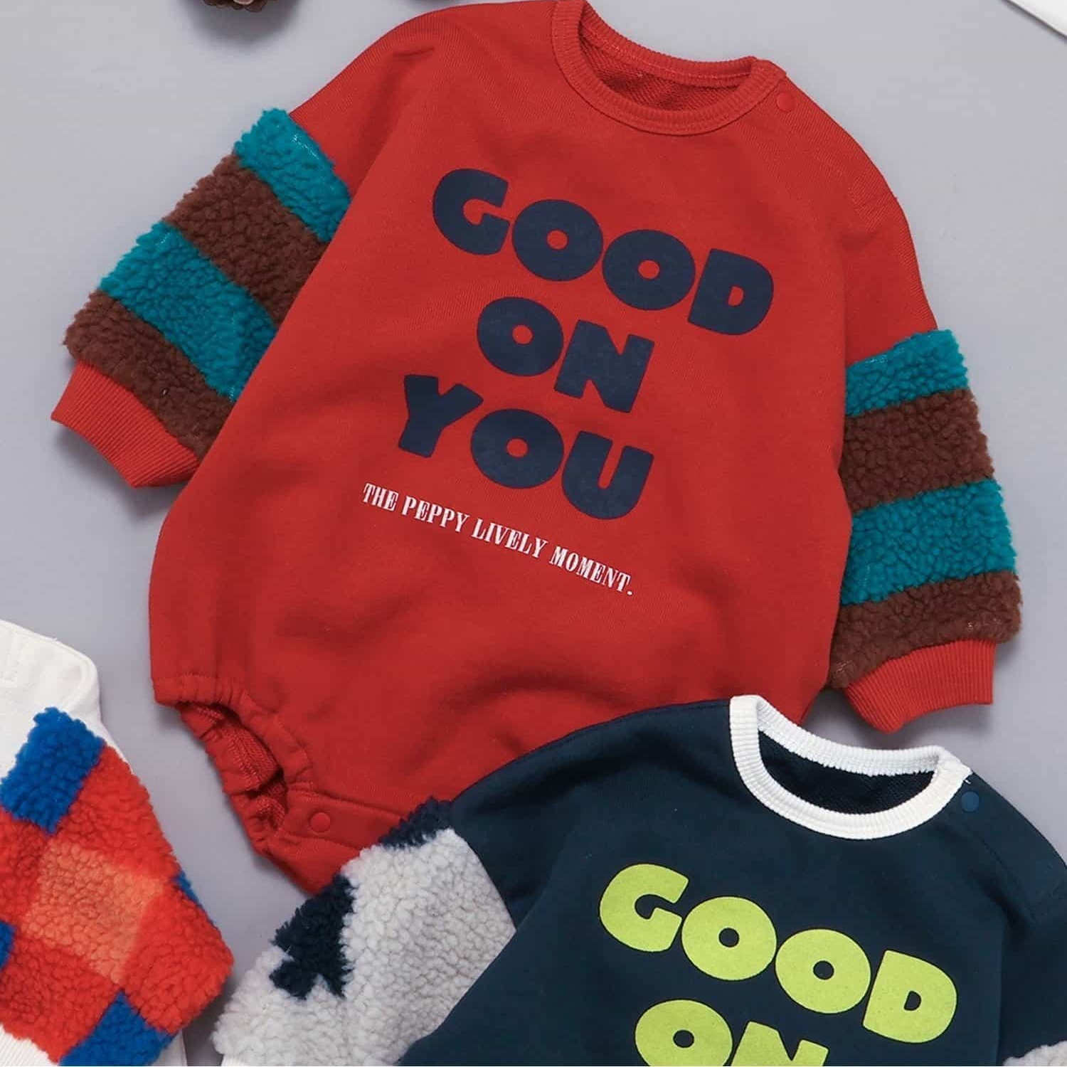 日本 BREEZE 2025秋宝宝新生儿卡通字母摇粒绒三角爬服长袖连身衣
