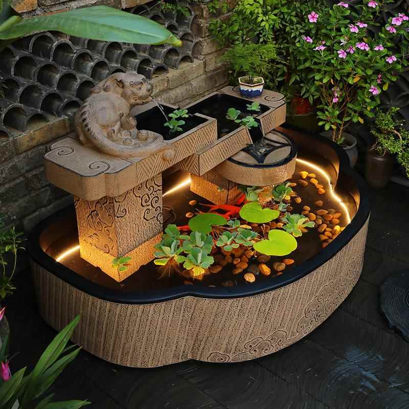 汉韵堂庭院花园流水鱼池室外露台循环水摆件大型鱼缸造景喷泉水池