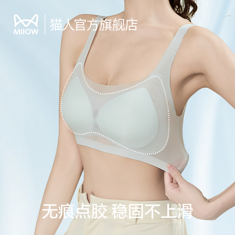 猫人内衣女夏季薄款冰丝凉感无钢圈收副乳软支撑无痕美背文胸罩