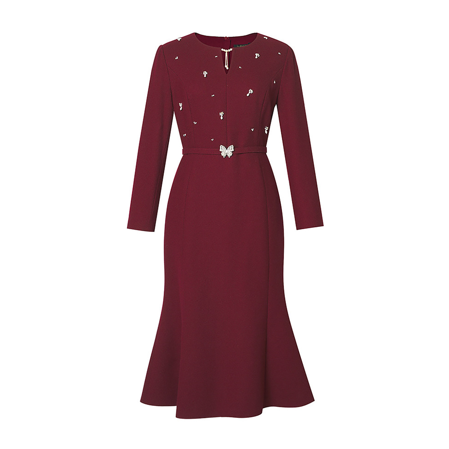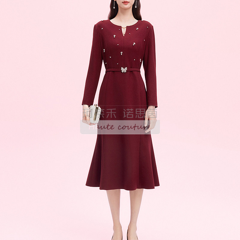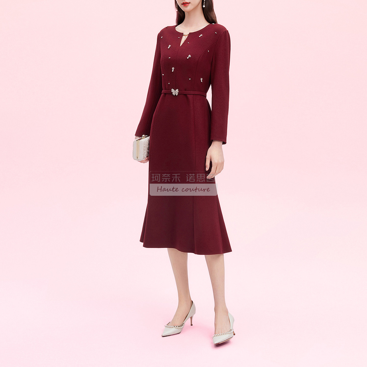 拉珂同款女裙 25秋冬季新款宴会收腰重工钉珠鱼尾连衣裙RF07014A8