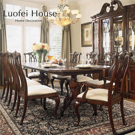 美式全实木餐桌椅组合6/8人餐厅成套家具饭桌1.8/2.2米别墅长餐桌