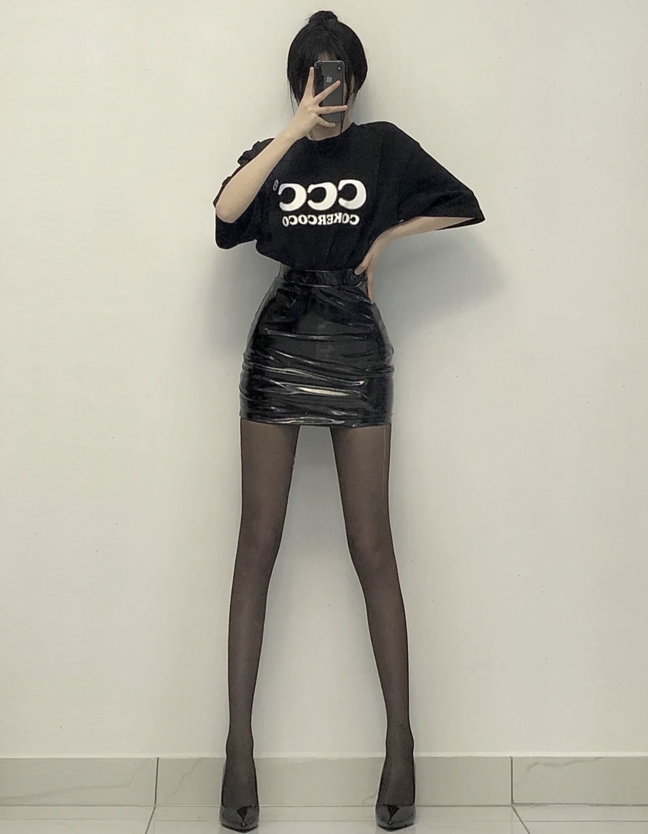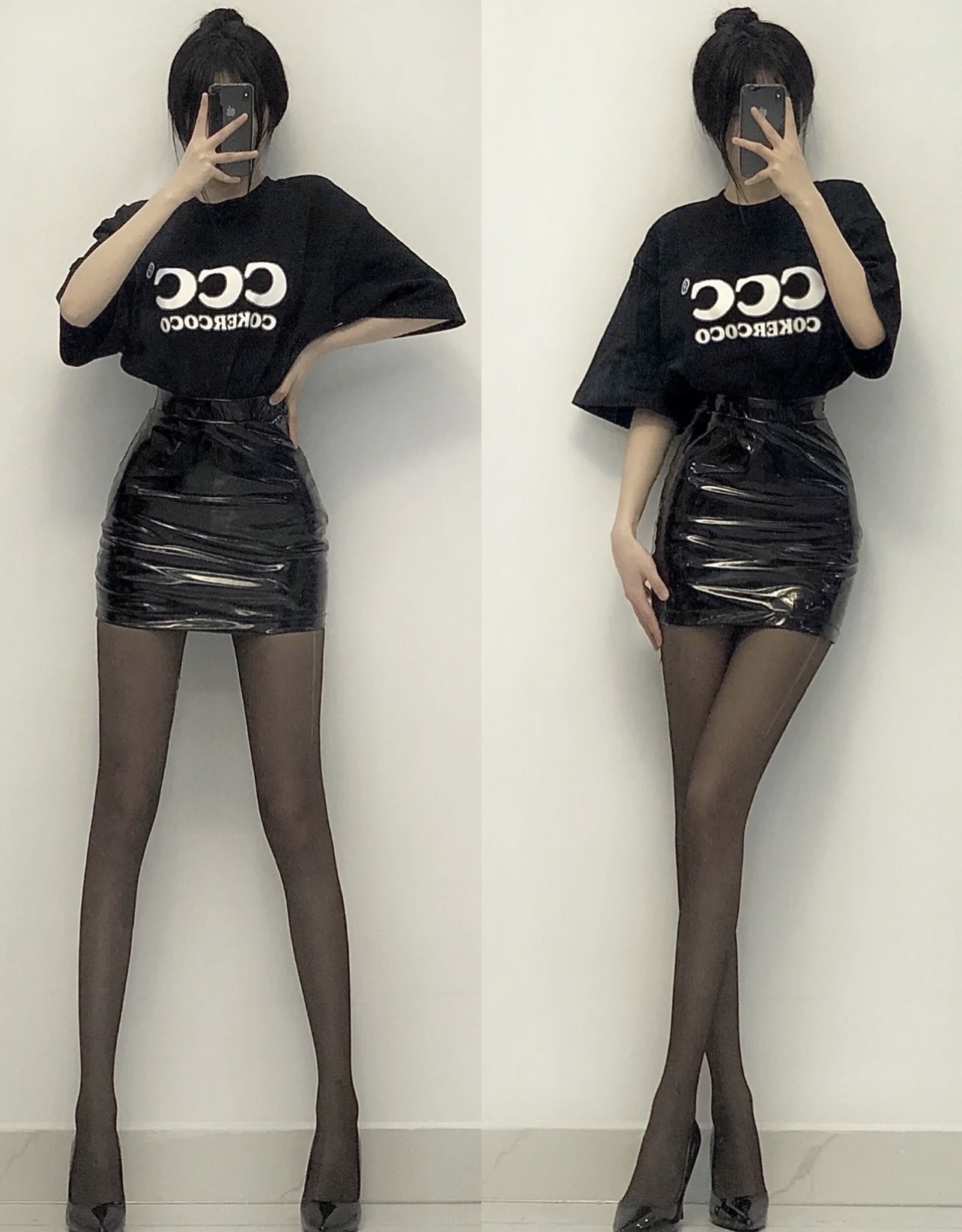 高腰短款亮面PU皮裙包臀半身裙女