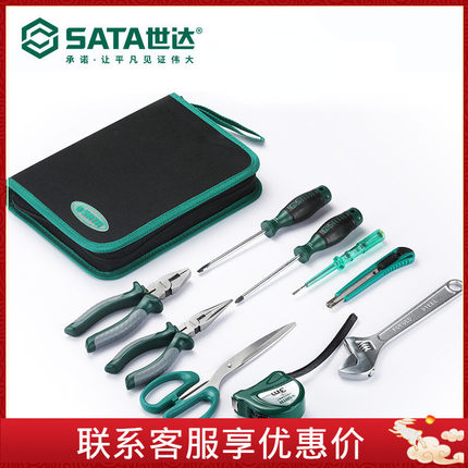 世达五金9件工具包维修套电工家用工具箱组多功能组合套装dy06016