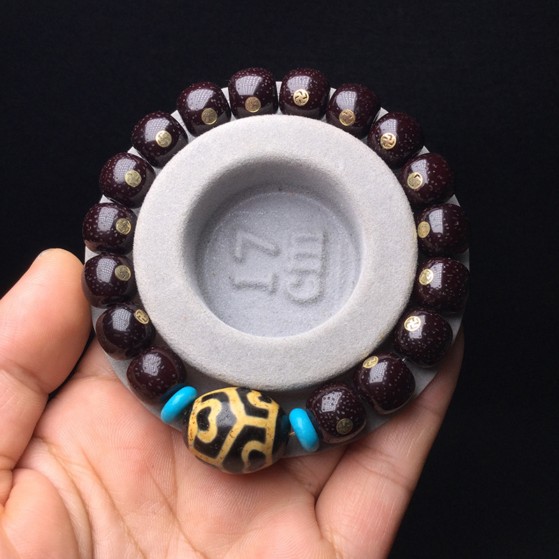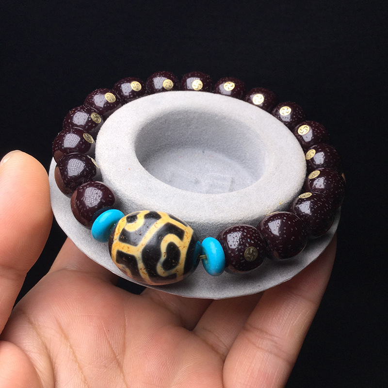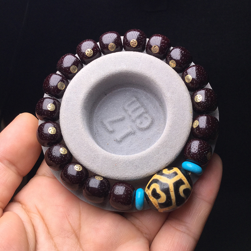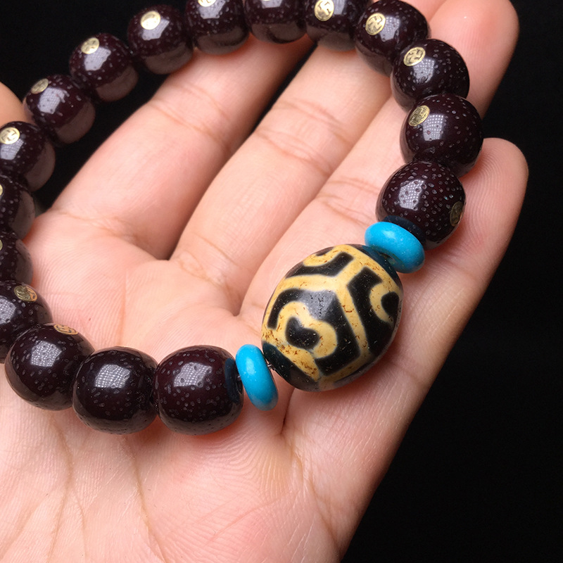 朱砂供星月菩提老型桶珠镶嵌铜万字手串达洛天珠文玩佛珠男女手链